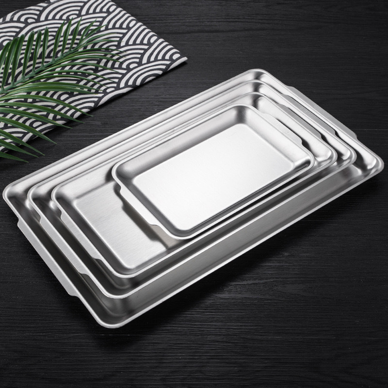 304 스테인레스 스틸 접시 황금 직사각형 접시 두꺼운 트레이 공예 장식품 바베큐 접시 서양 음식 스낵 접시 사각형 접시