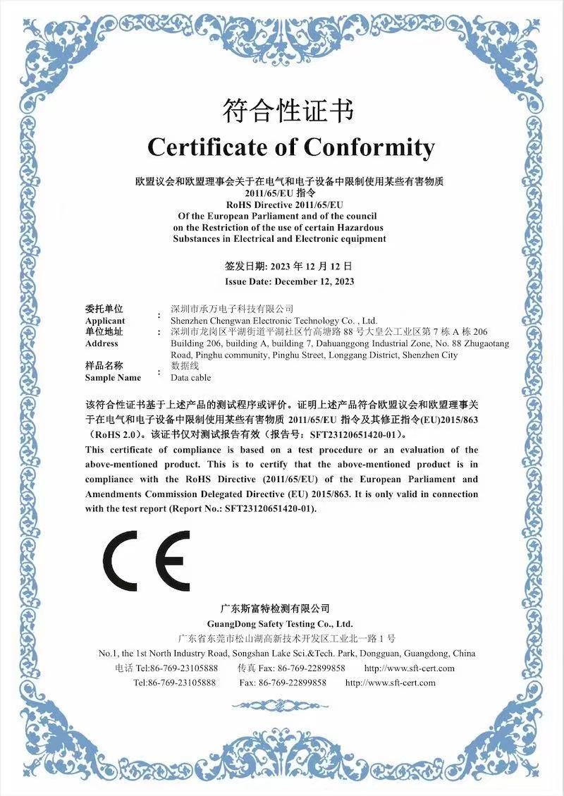 - 所有数据线享12个月质保(人为损坏、折断、进水除外),保修期内免费维修或更换。