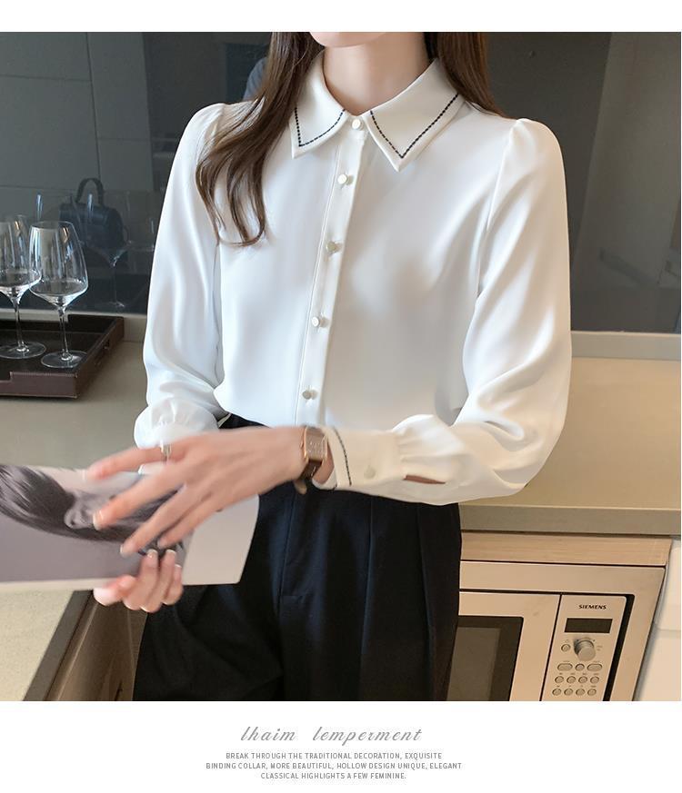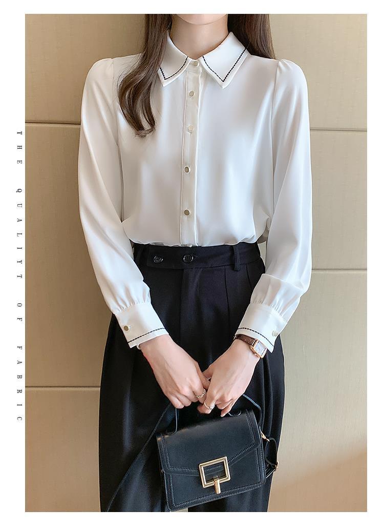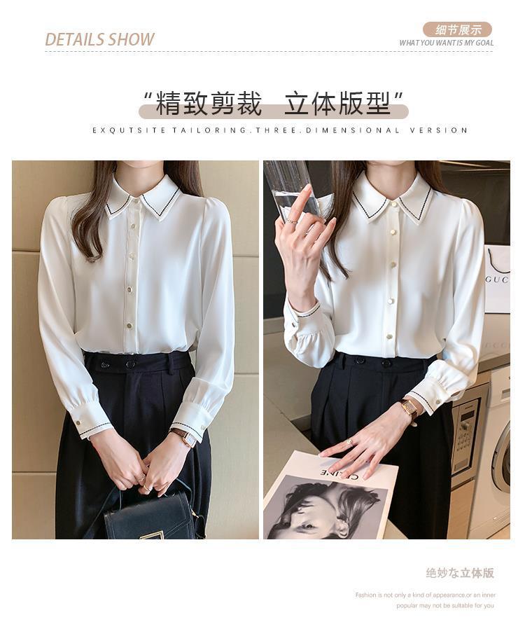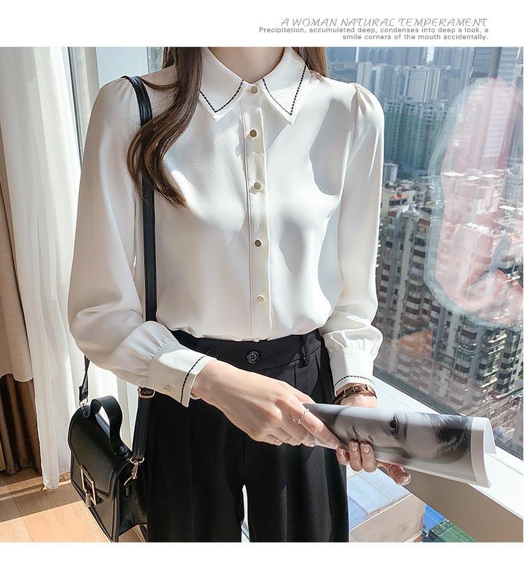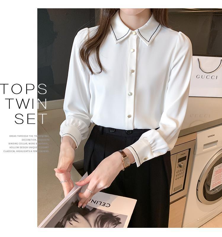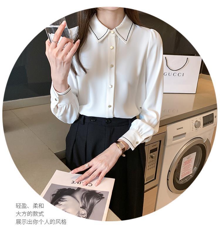 도매 화이트 셔츠 여성용 디자인 감각적인 니치 스타일 이너웨어 신상 봄 시폰 긴팔 탑 셔츠 특가스토어 가기