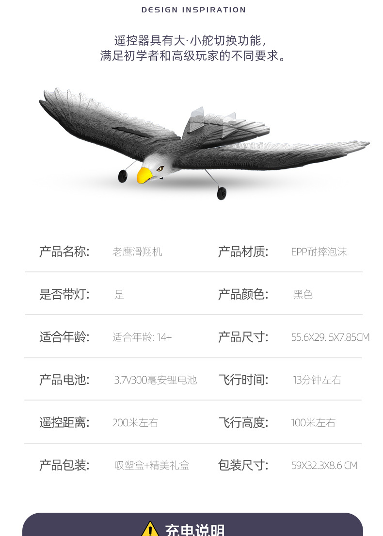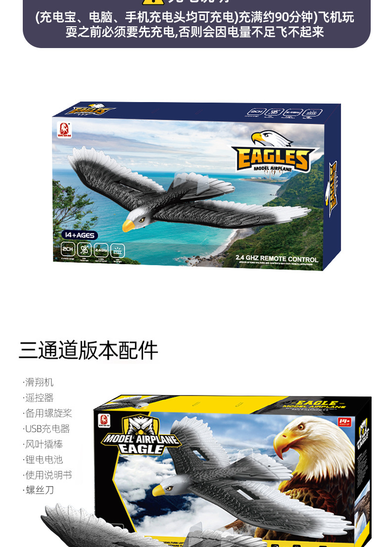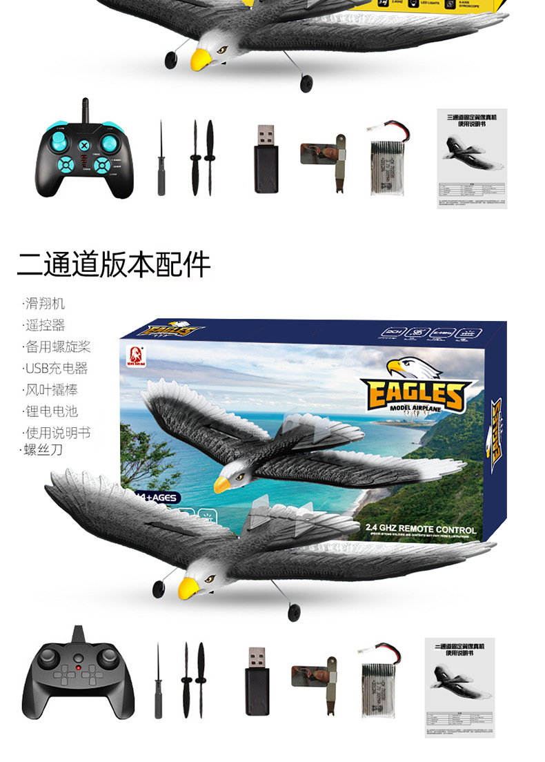국경 간 인기 시뮬레이션 독수리 원격 제어 글라이더 BM17 고정 날개 폼 3방향 원격 제어 항공기 독수리 모델 항공기스토어 가기