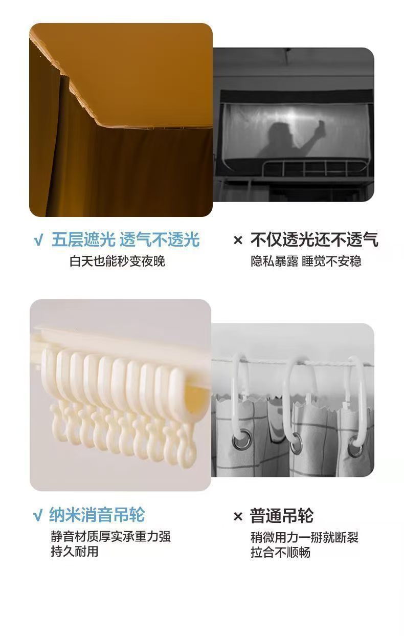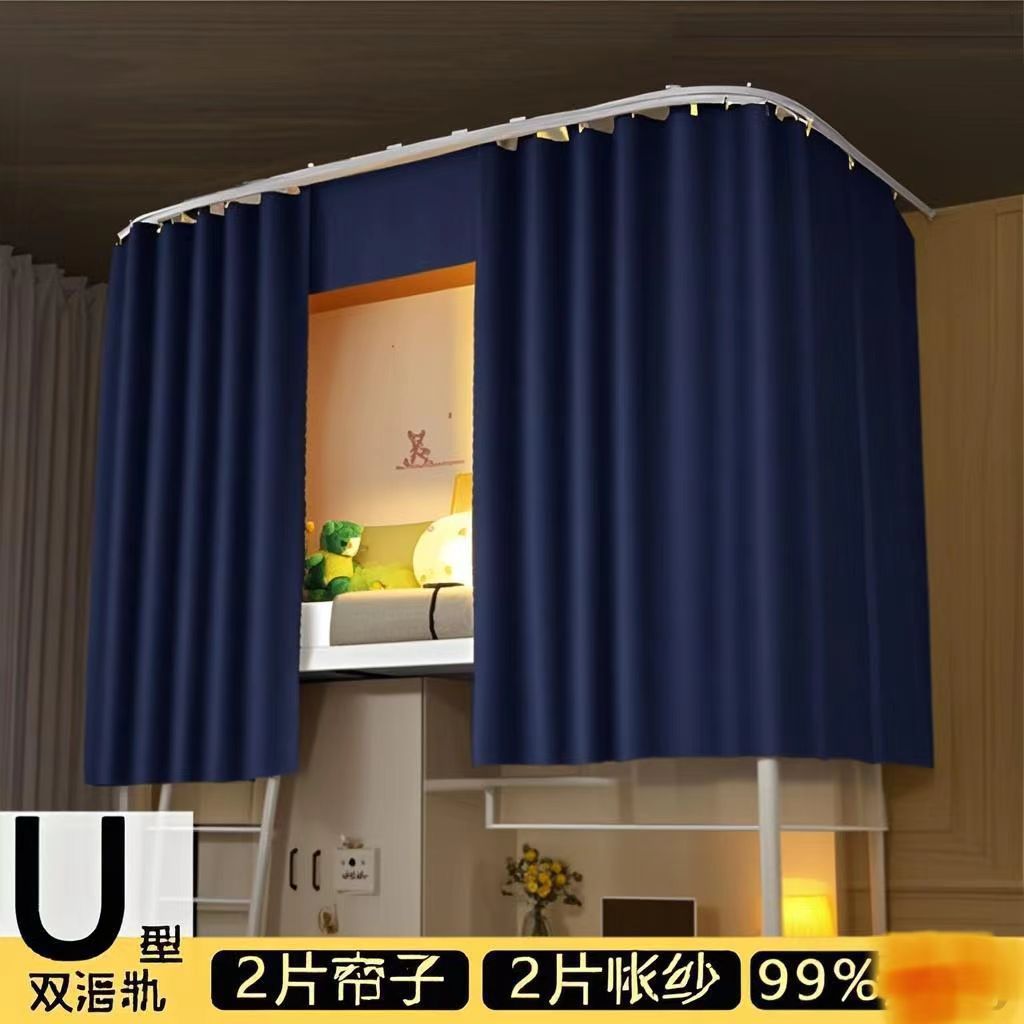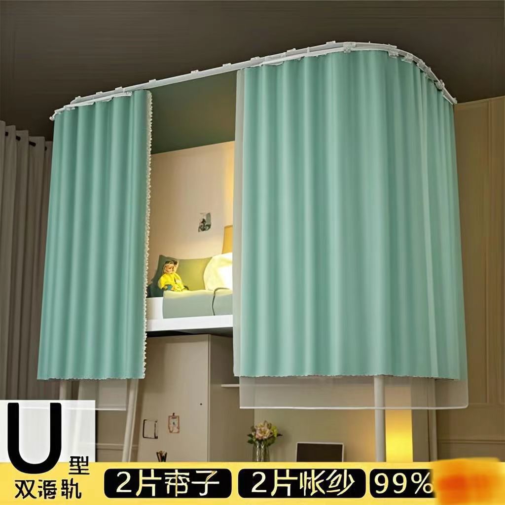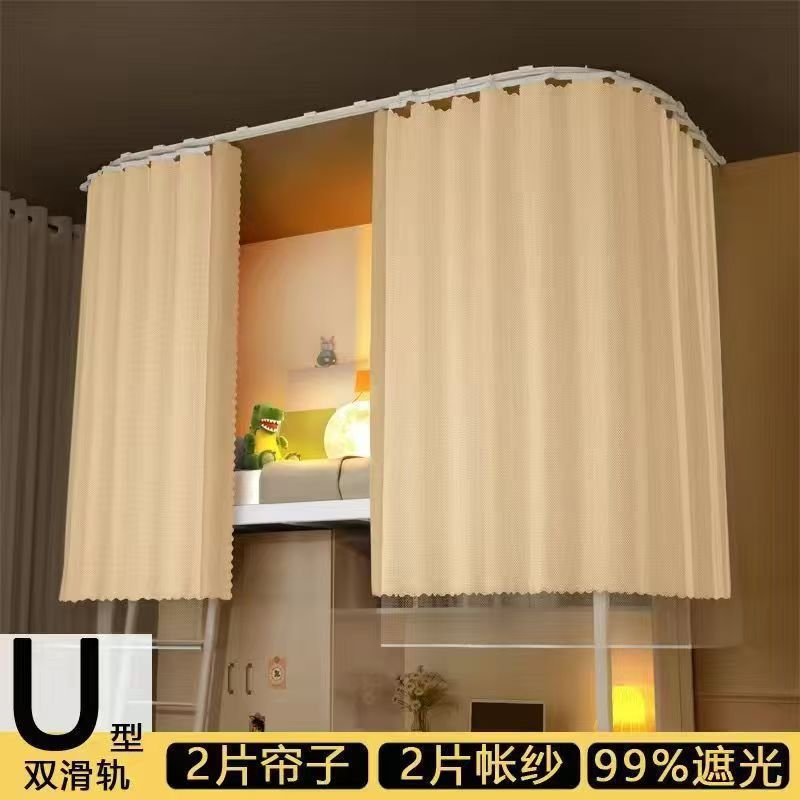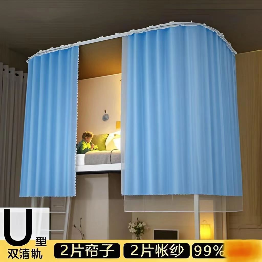 대학생 기숙사 이층침대용 천장형 U자형 트랙 침대 커튼, 일체형 무설치 침대 커튼