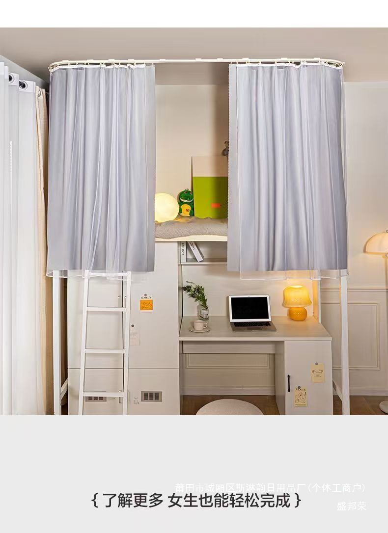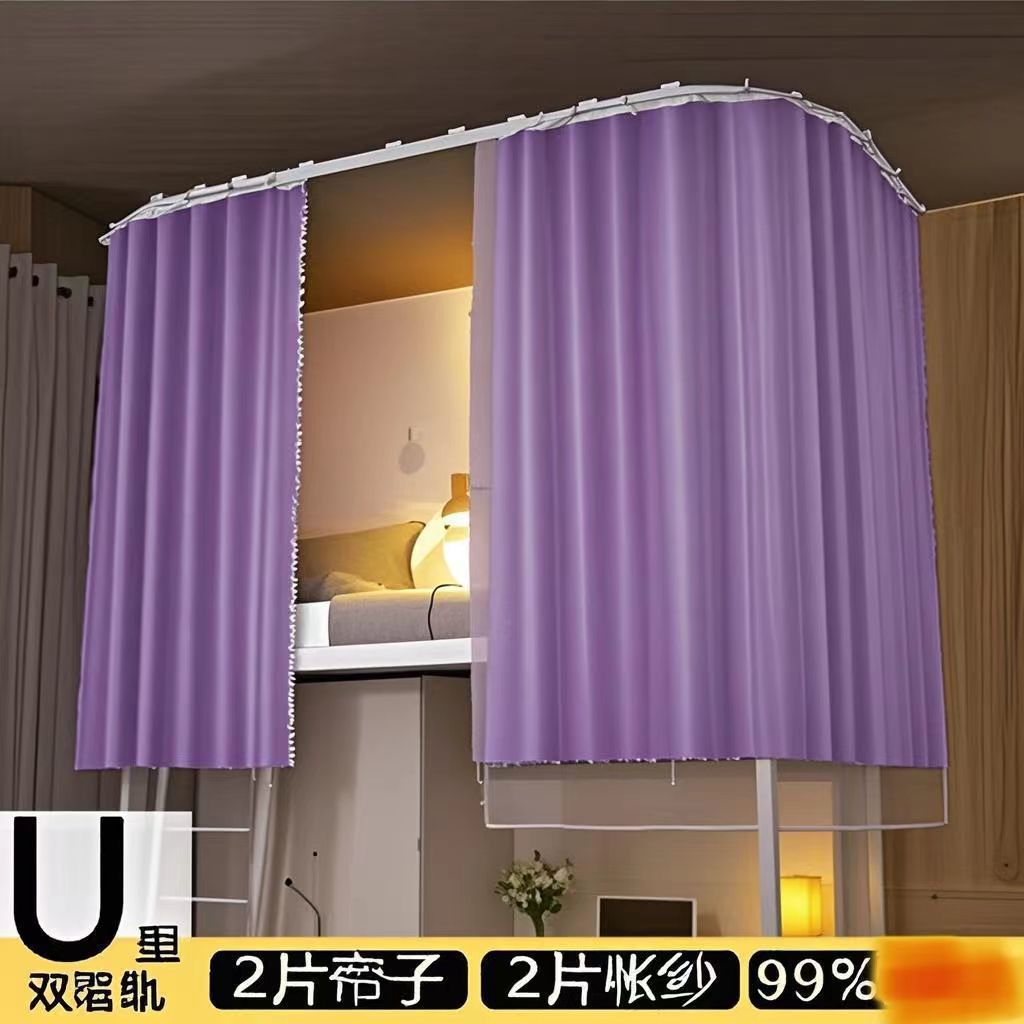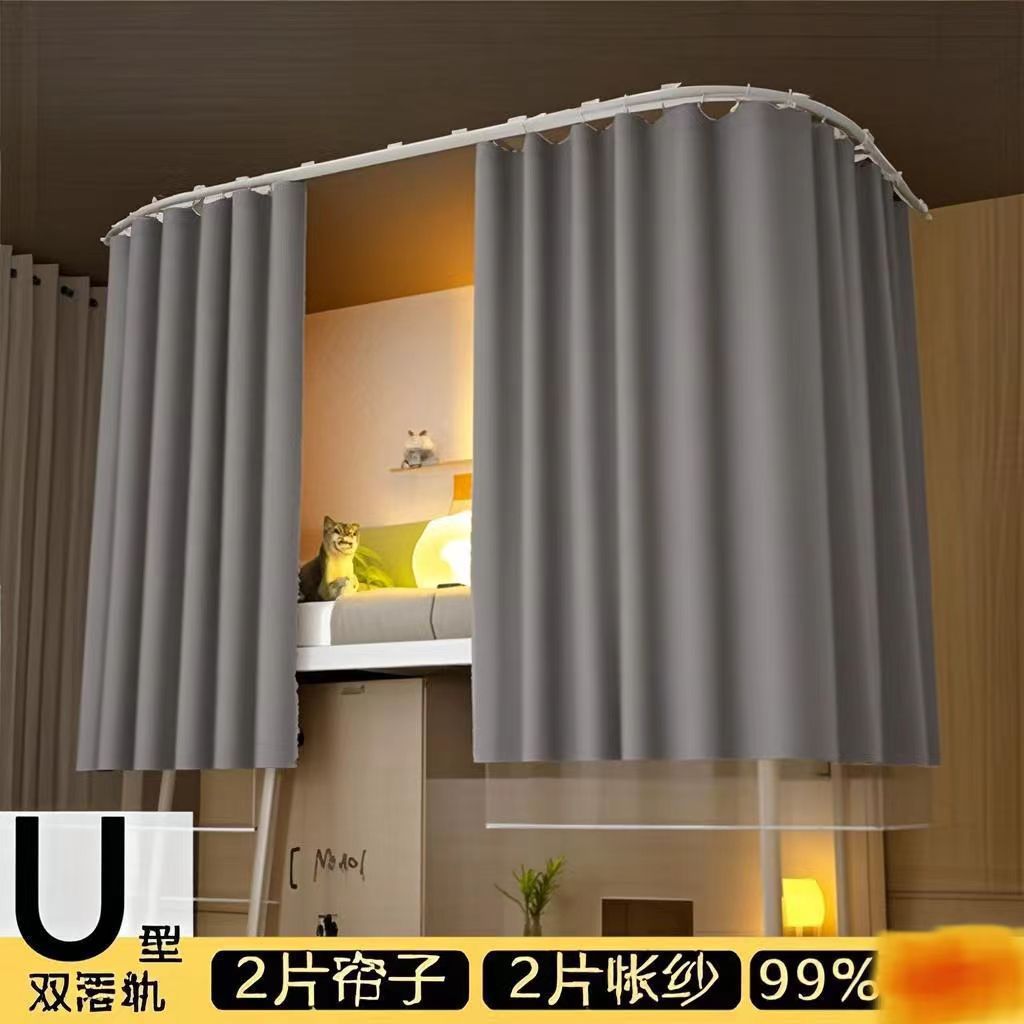 대학생 기숙사 이층침대용 천장형 U자형 트랙 침대 커튼, 일체형 무설치 침대 커튼스토어 가기