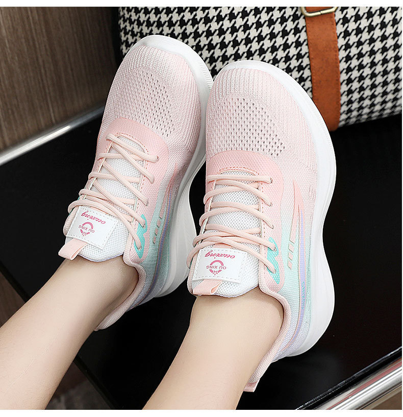 여성을위한 플라이 짠 신발 2025 봄과 여름 새로운 다목적 부드러운 밑창 메쉬 통기성 슈퍼 인기 캐주얼 스포츠 메쉬 신발스토어 가기