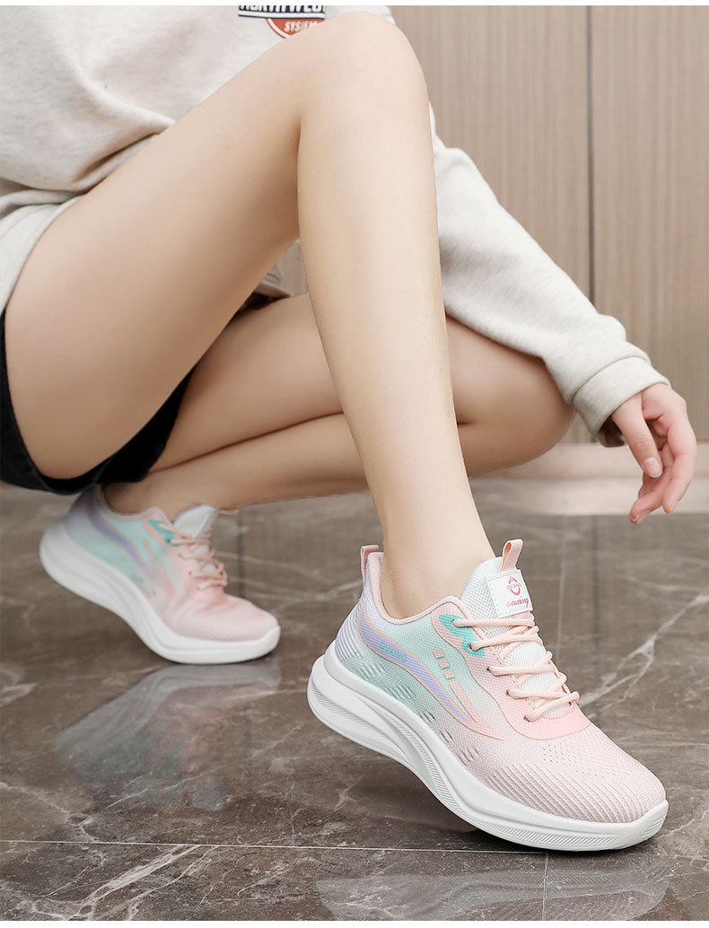 여성을위한 플라이 짠 신발 2025 봄과 여름 새로운 다목적 부드러운 밑창 메쉬 통기성 슈퍼 인기 캐주얼 스포츠 메쉬 신발