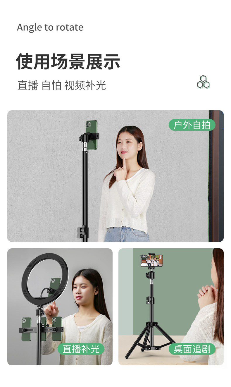 • 2.1m [두꺼운 합금 브래킷] 조명 10inch개 + 카메라 위치 4개 + 셀카 + 보관 가방 ★