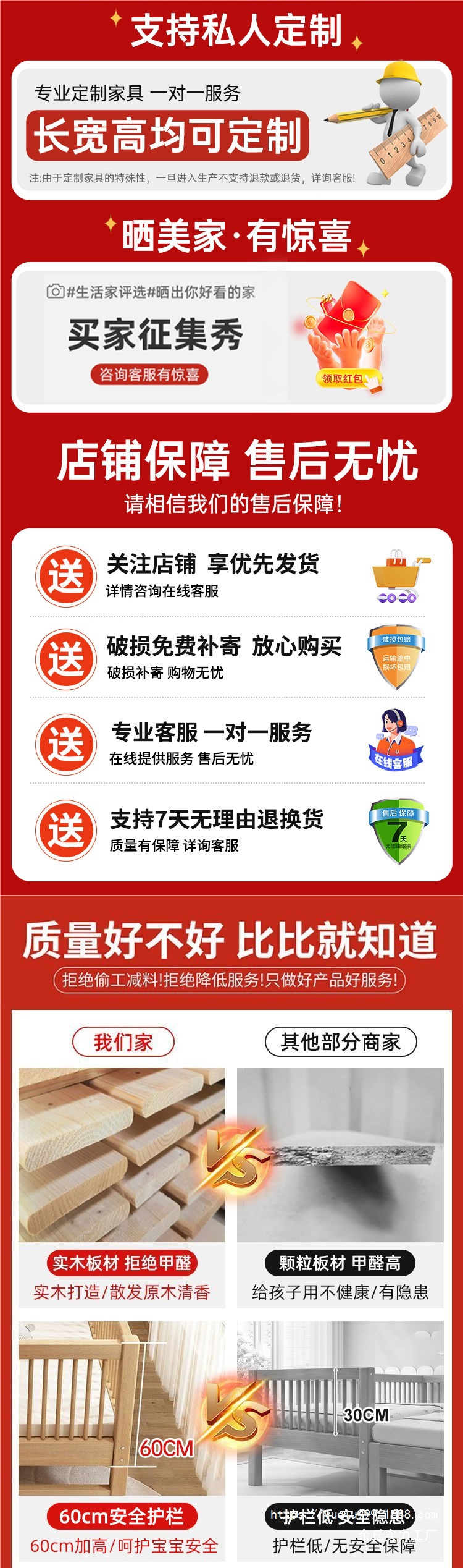 • 양쪽 가드레일에는 두꺼운 브라운 매트[수입 호두]가 포함되어 있습니다.
