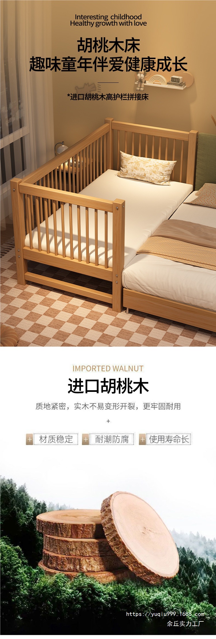 호두나무 어린이 침대 유아용 침대 순수한 아기 단단한 나무 접합 침대 강화 및 두꺼운 공주 침대 싱글 침대 매우 두꺼운스토어 가기