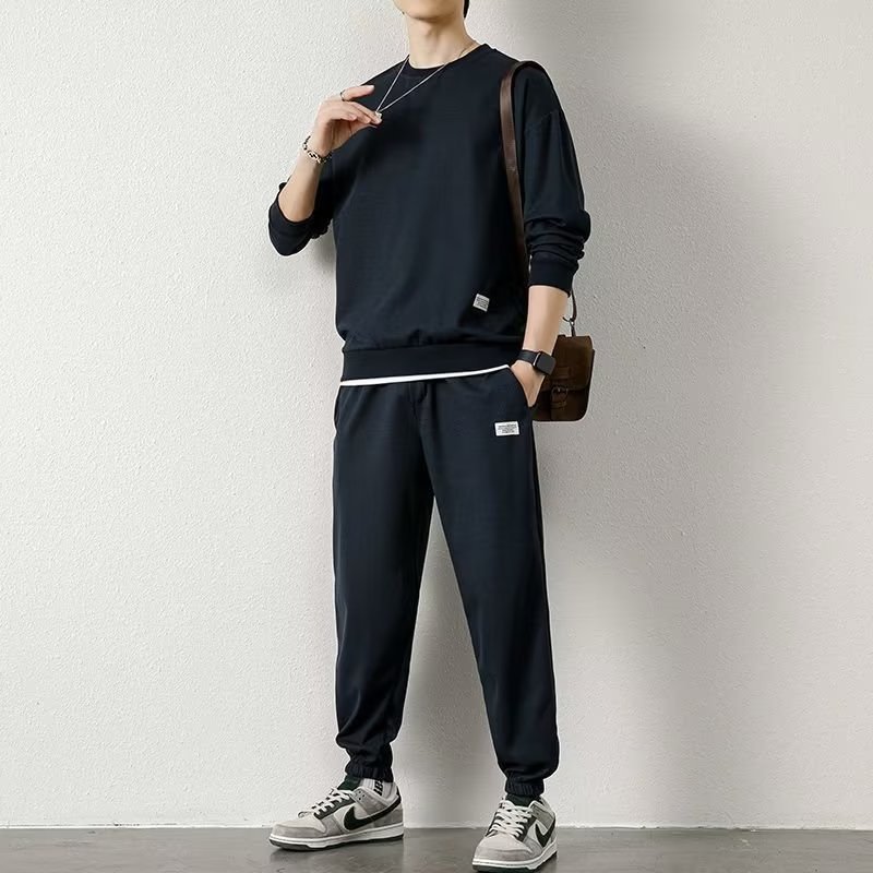 와플 긴팔 세트 남성용 스웨트셔츠와 스웨트팬츠 투피스 세트 봄 가을 트렌디한 단색 남성 스포츠 세트스토어 가기