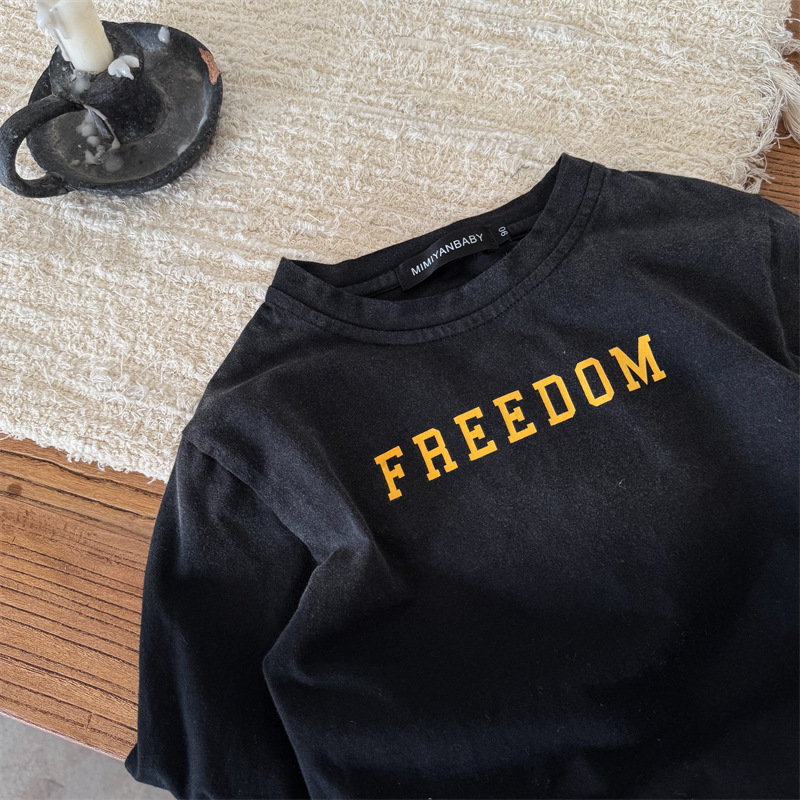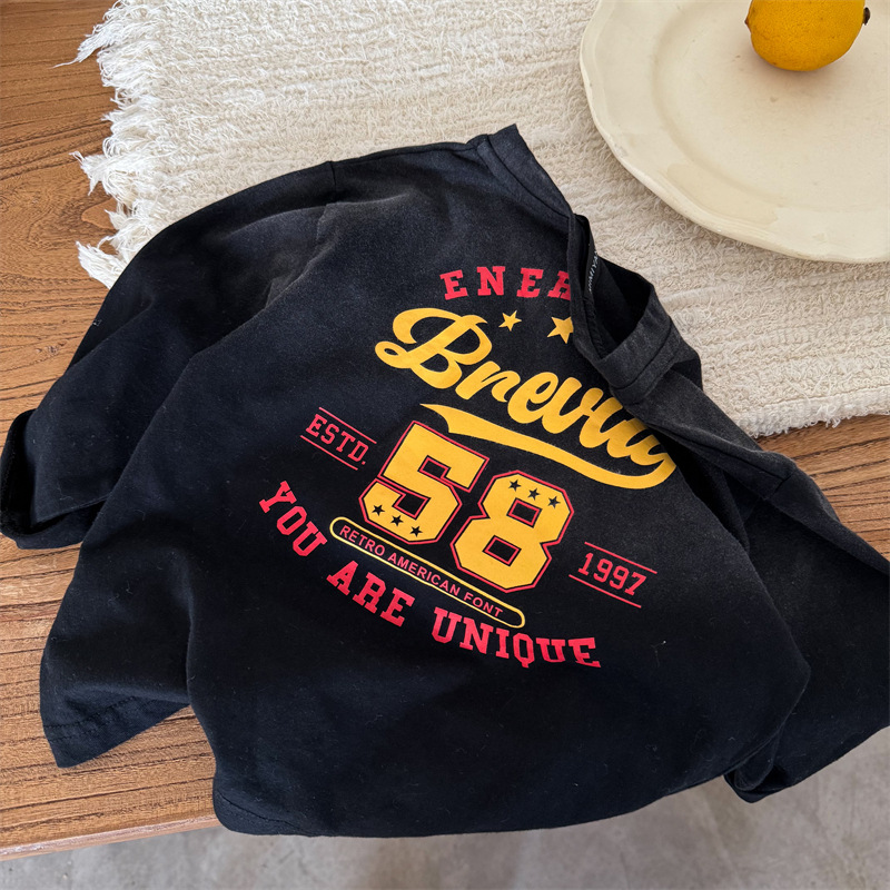 어린이 긴팔 T2025 가을 새로운 스타일 소년과 소녀를위한 오래된 편지 긴팔 T 아기 다용도 티셔츠스토어 가기