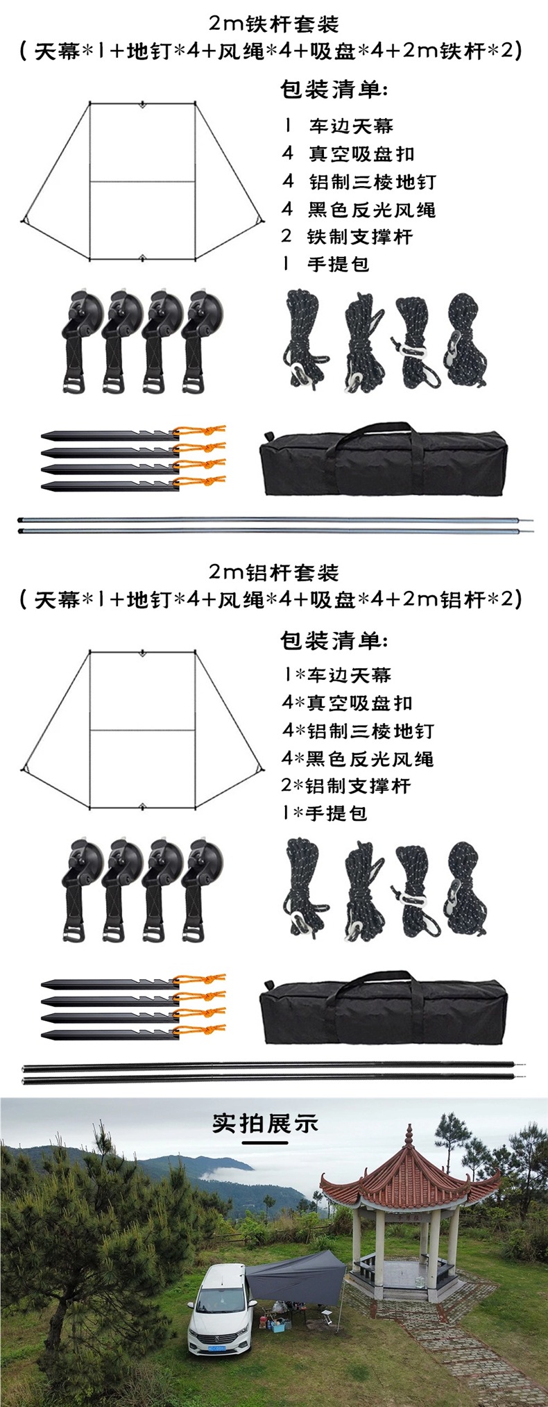 • 검정색 2* 3m +4 흡입 컵(바닥 못, 바람 로프 및 기둥 제외)