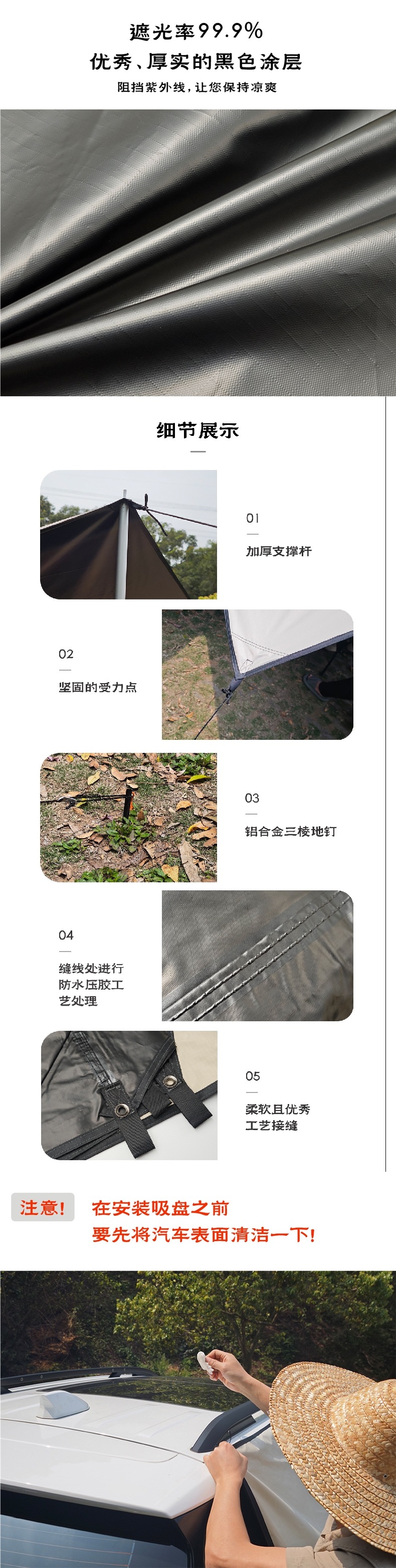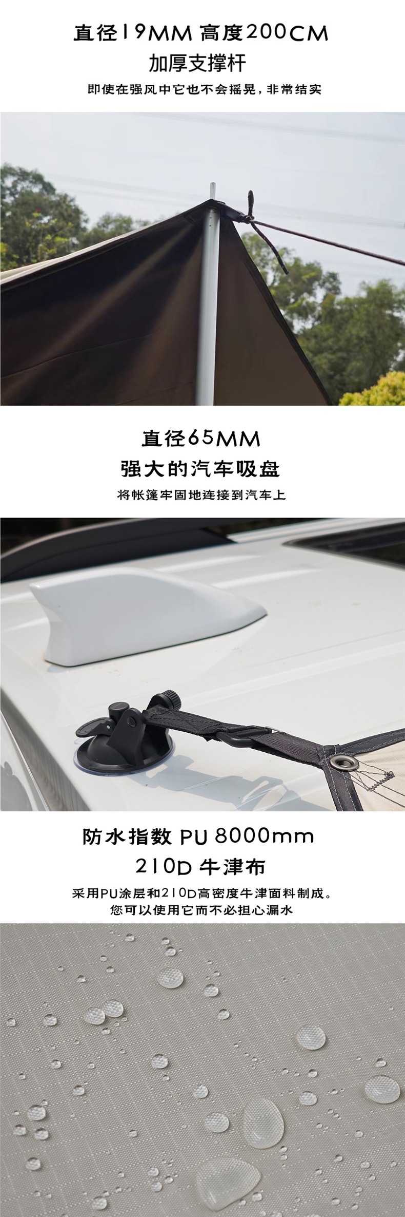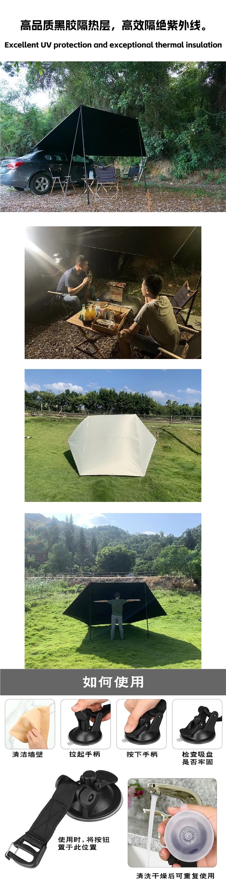 차량용 캐노피, 사이드 텐트, 야외 차량 캠핑 차양, 자동차 지붕, 자율주행 여행, 흡입컵형 비닐 차량 후면 텐트