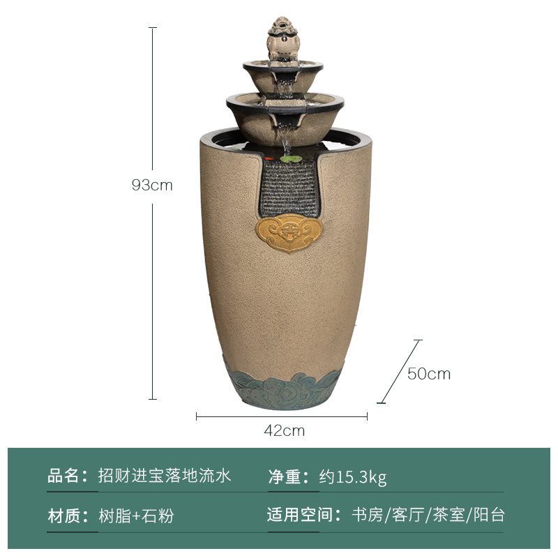 새로운 중국 스타일의 흐르는 물 장식품, 실내 거실 TV 캐비닛 옆 순환 물 분수 바닥, 새 집 개업 풍경스토어 가기