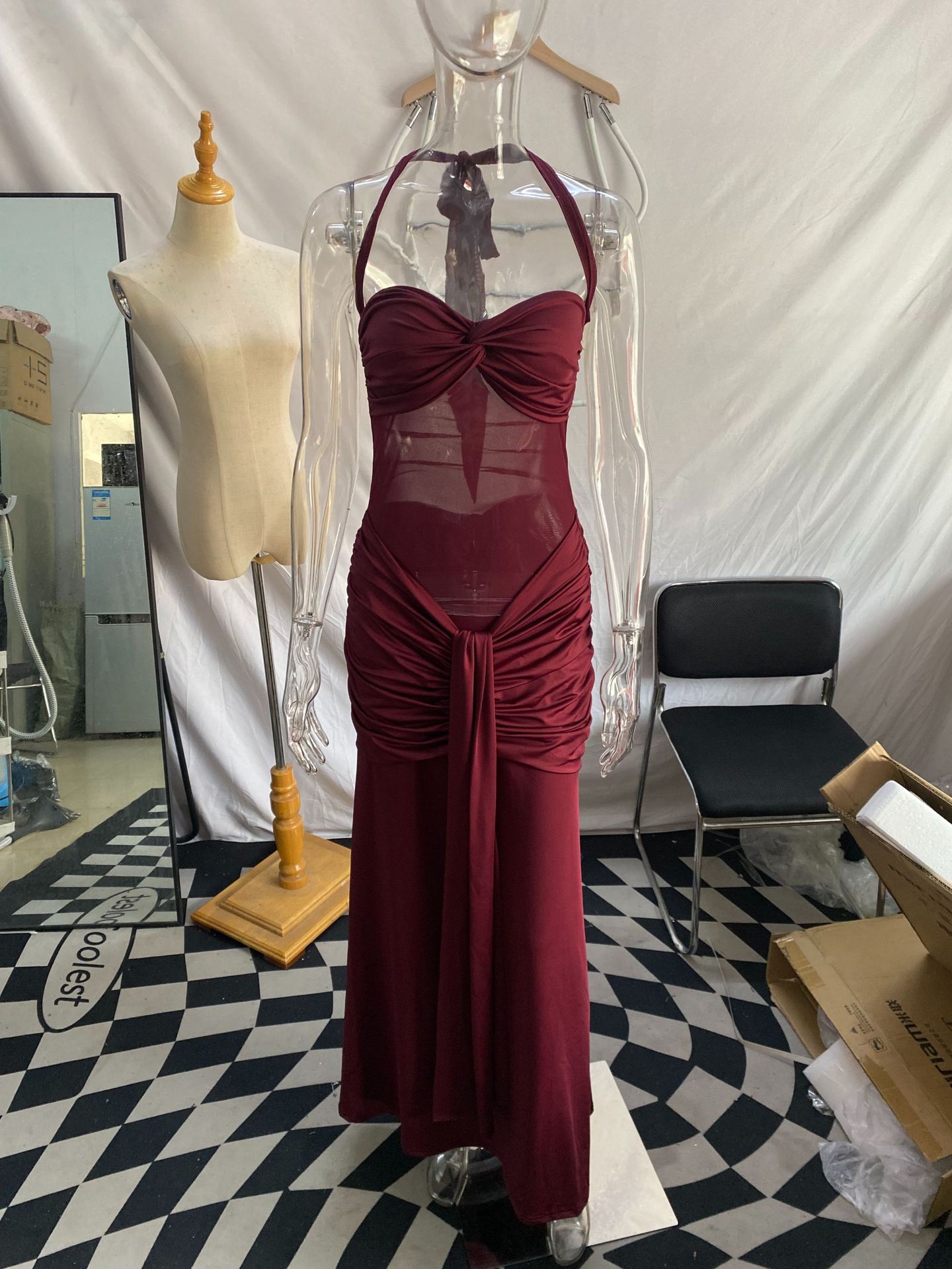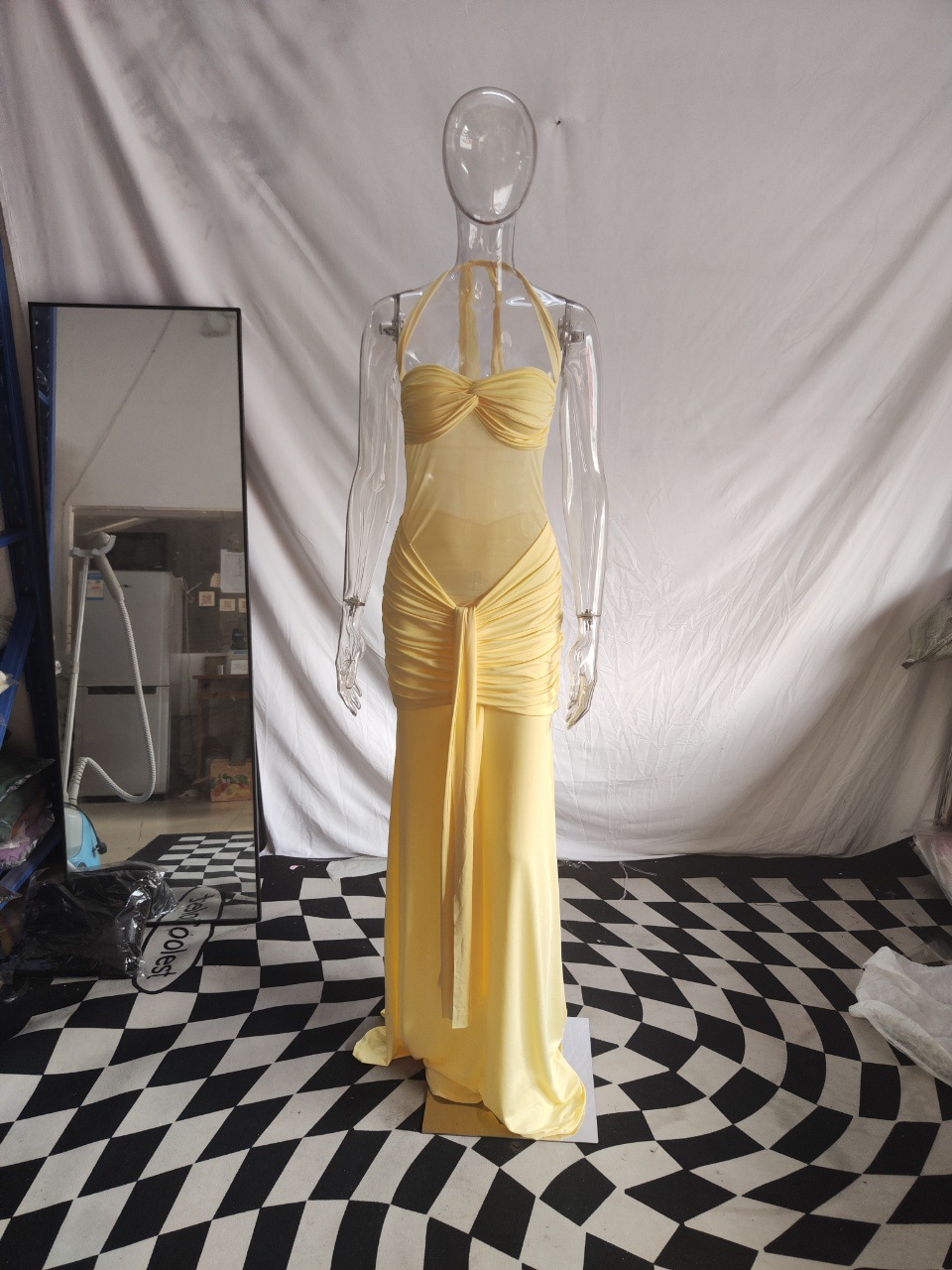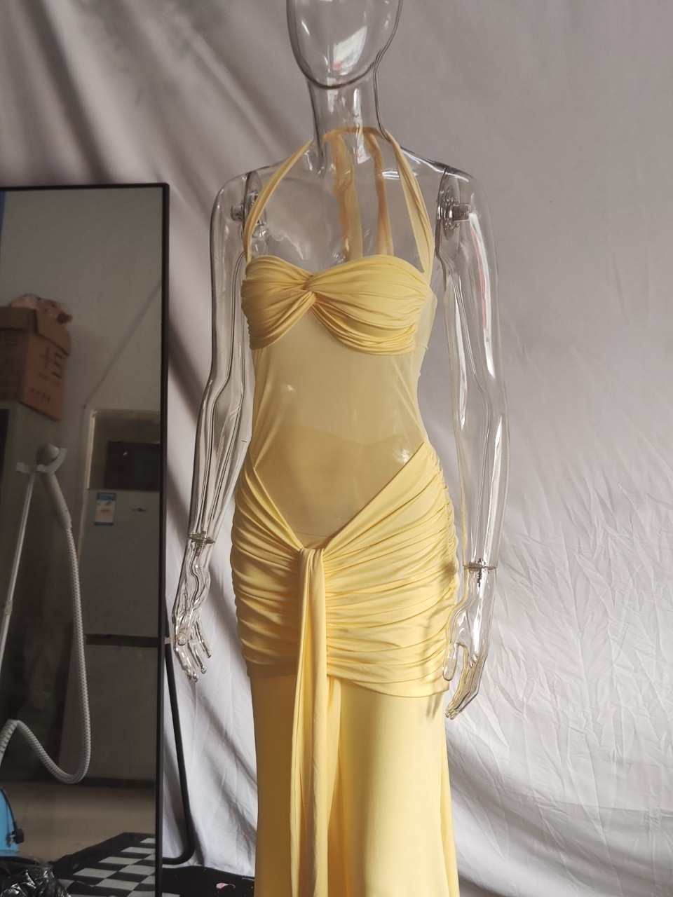 2025 유럽과 미국 스타일의 롱 스커트 메쉬 피쉬테일 리본 순수한 욕망 조끼 드레스 슬림핏 힙 커버 드레스스토어 가기