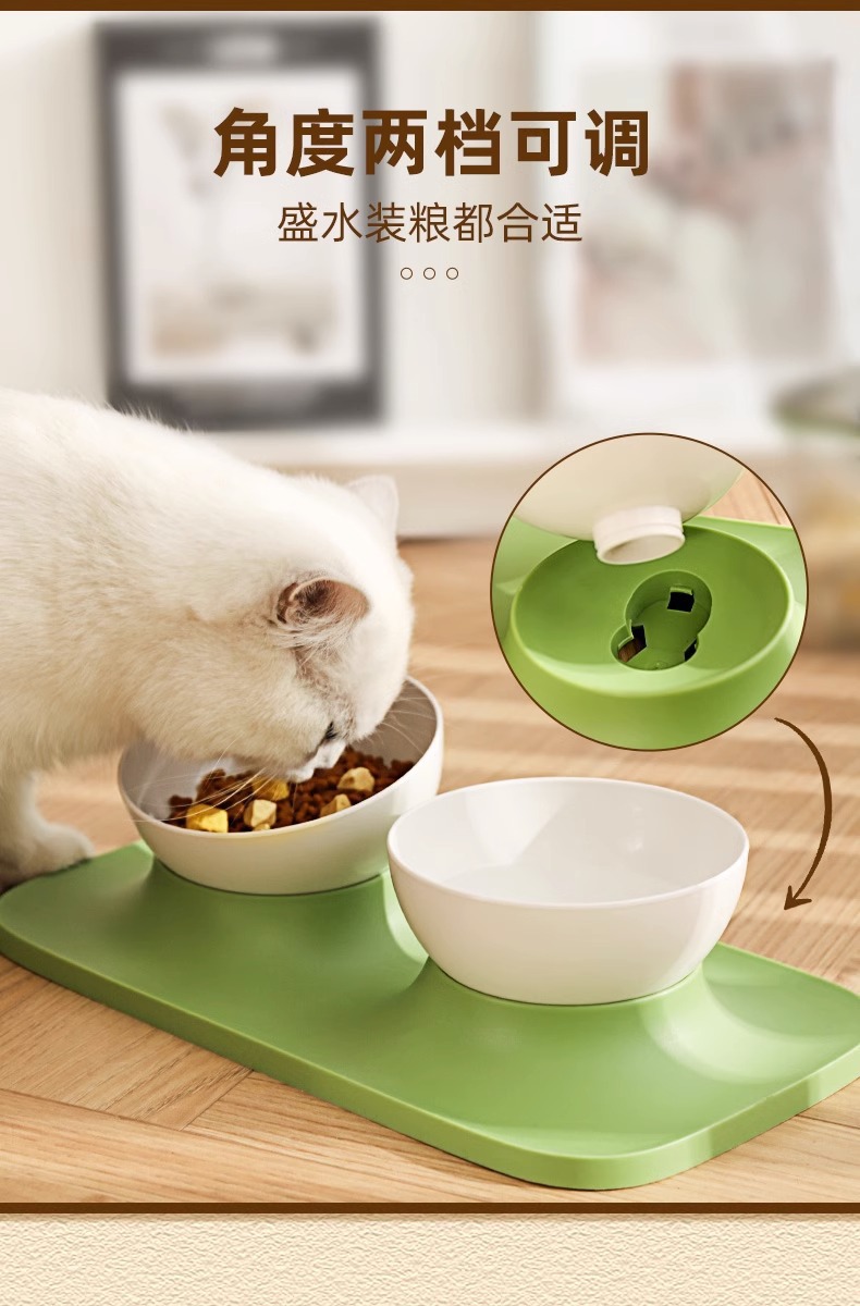고양이 애완동물 먹이 그릇, 경사진 경추 보호대, 검은 턱 방지 물 먹이통, 조절 가능한 고양이 사료 및 개 사료 그릇스토어 가기