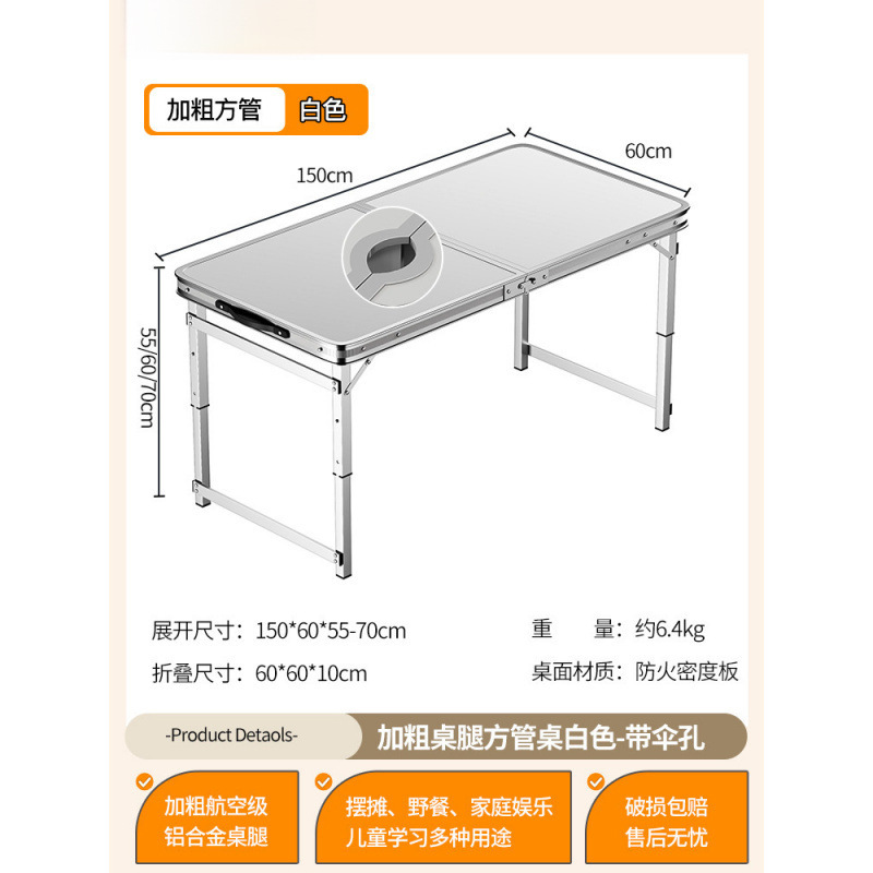 • 업그레이드된 대외 무역 품질 [업그레이드된 알루미늄 합금 사각 튜브] 150*60cm 흰색 + 알루미늄 의자 4개