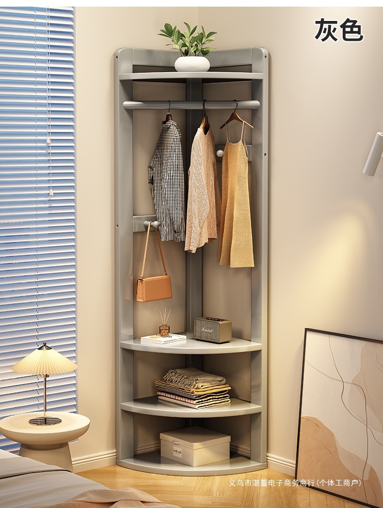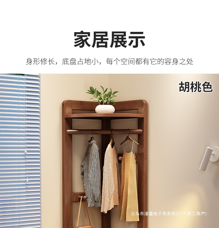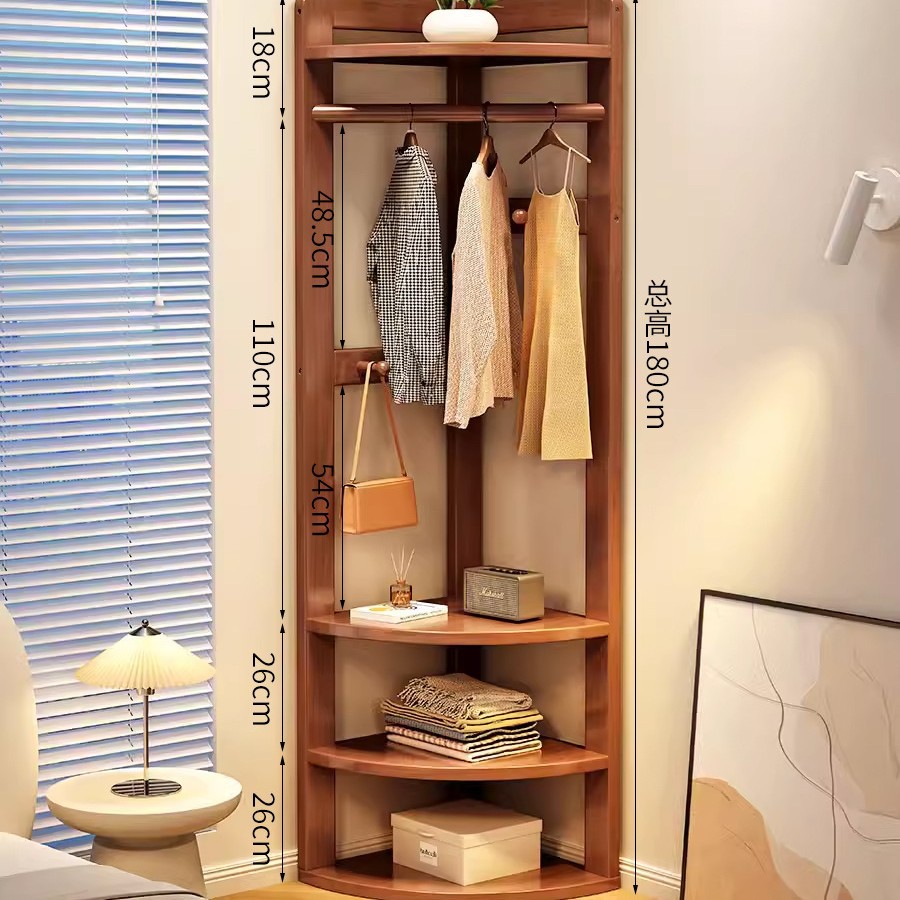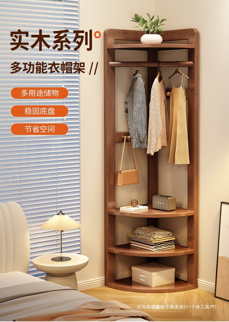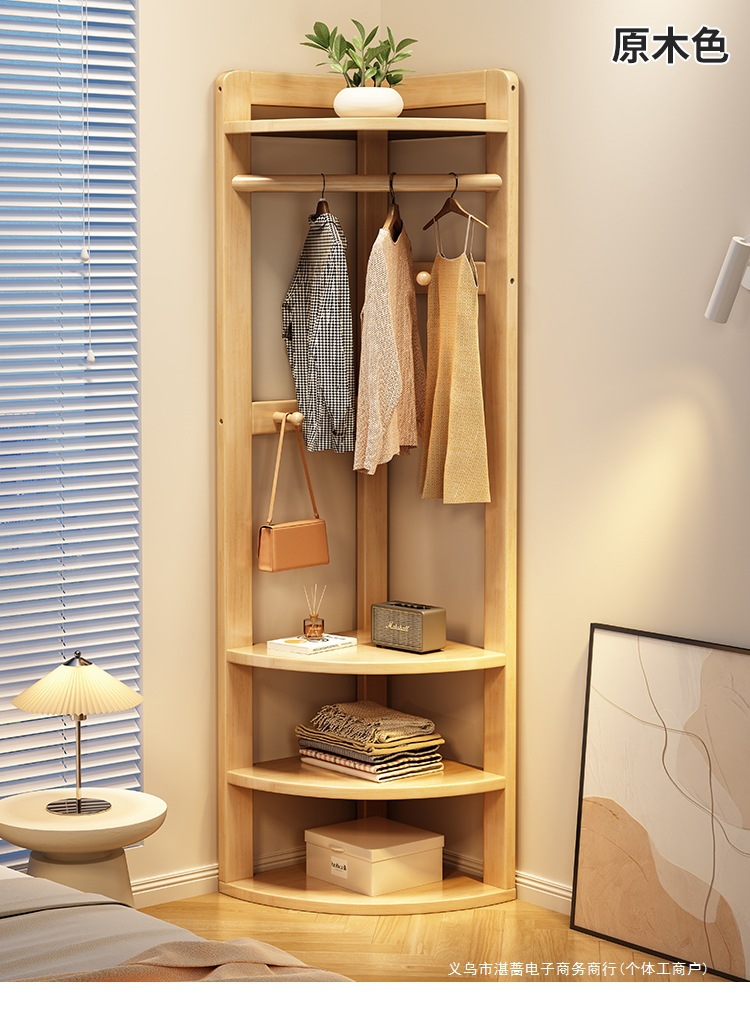 단단한 나무 코너 옷걸이 바닥에서 천장까지 침실 옷걸이 벽 코너 선반 간단한 가정용 코너 옷걸이
