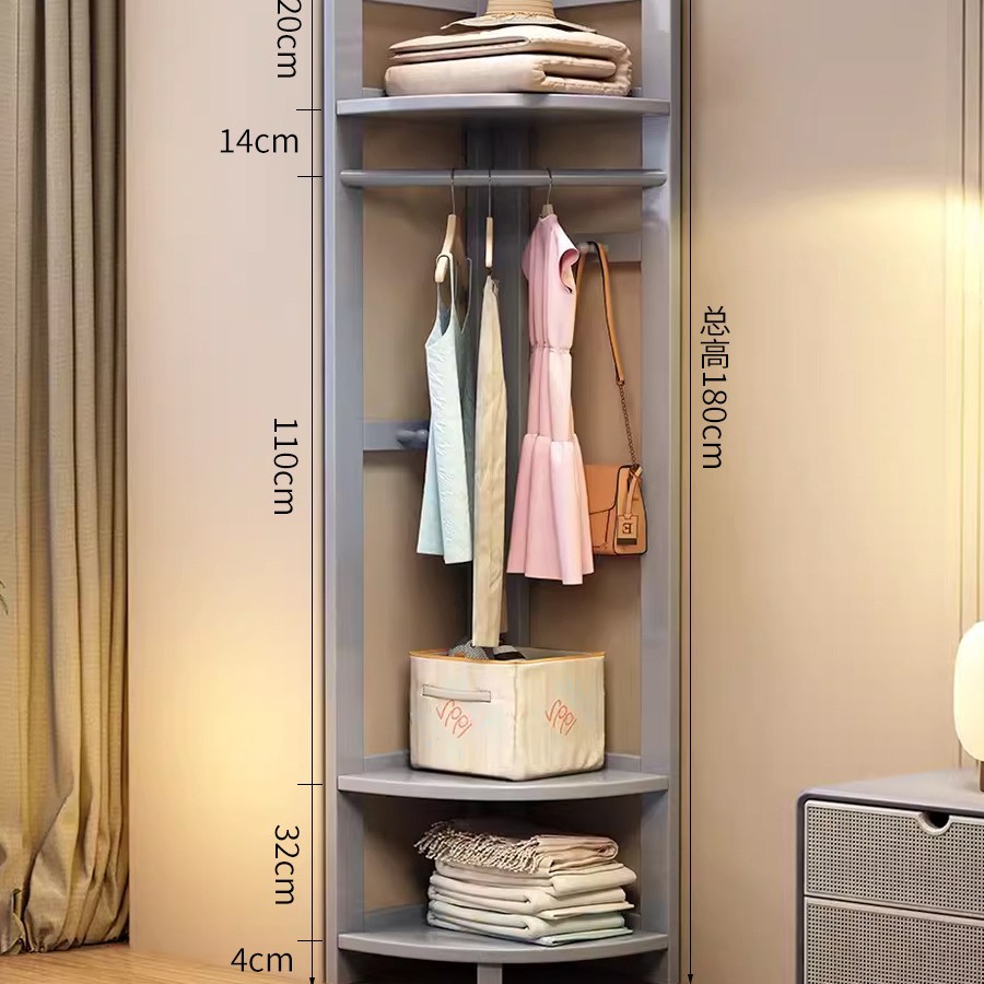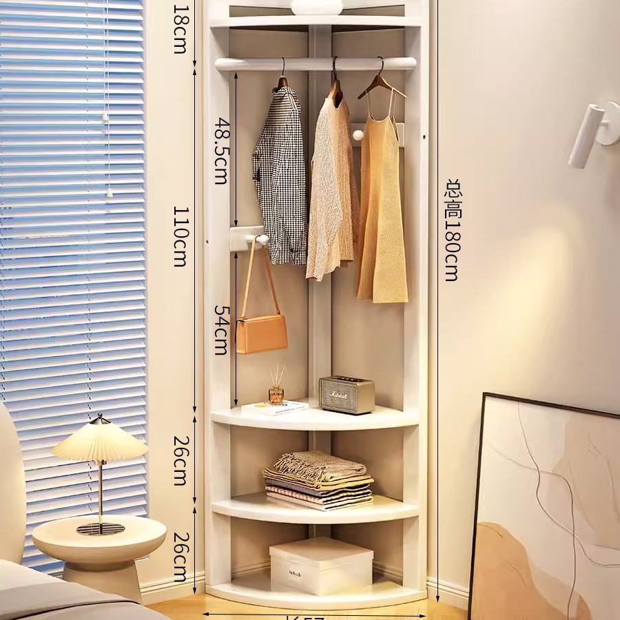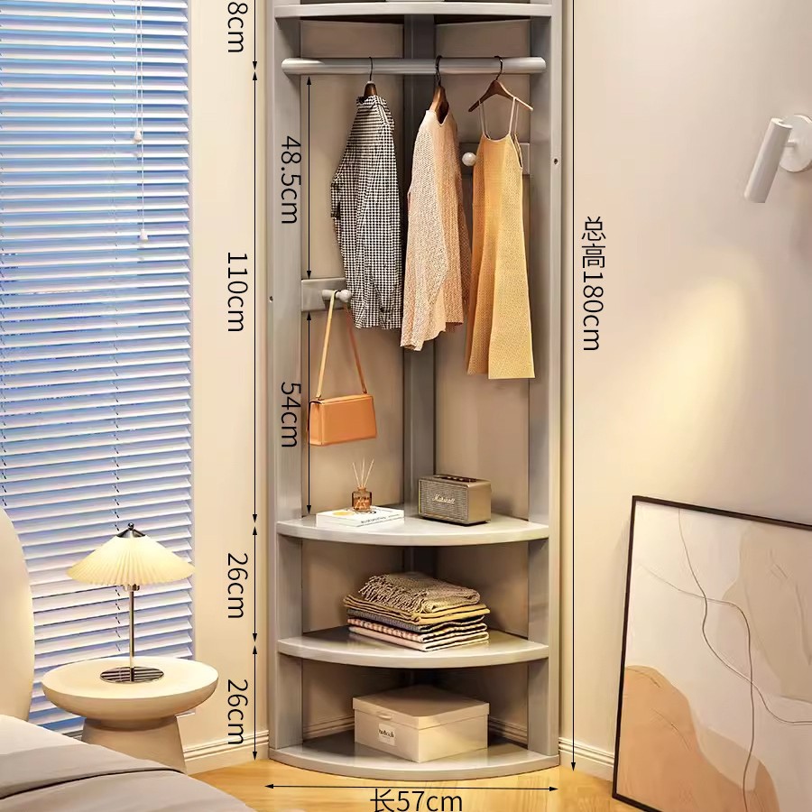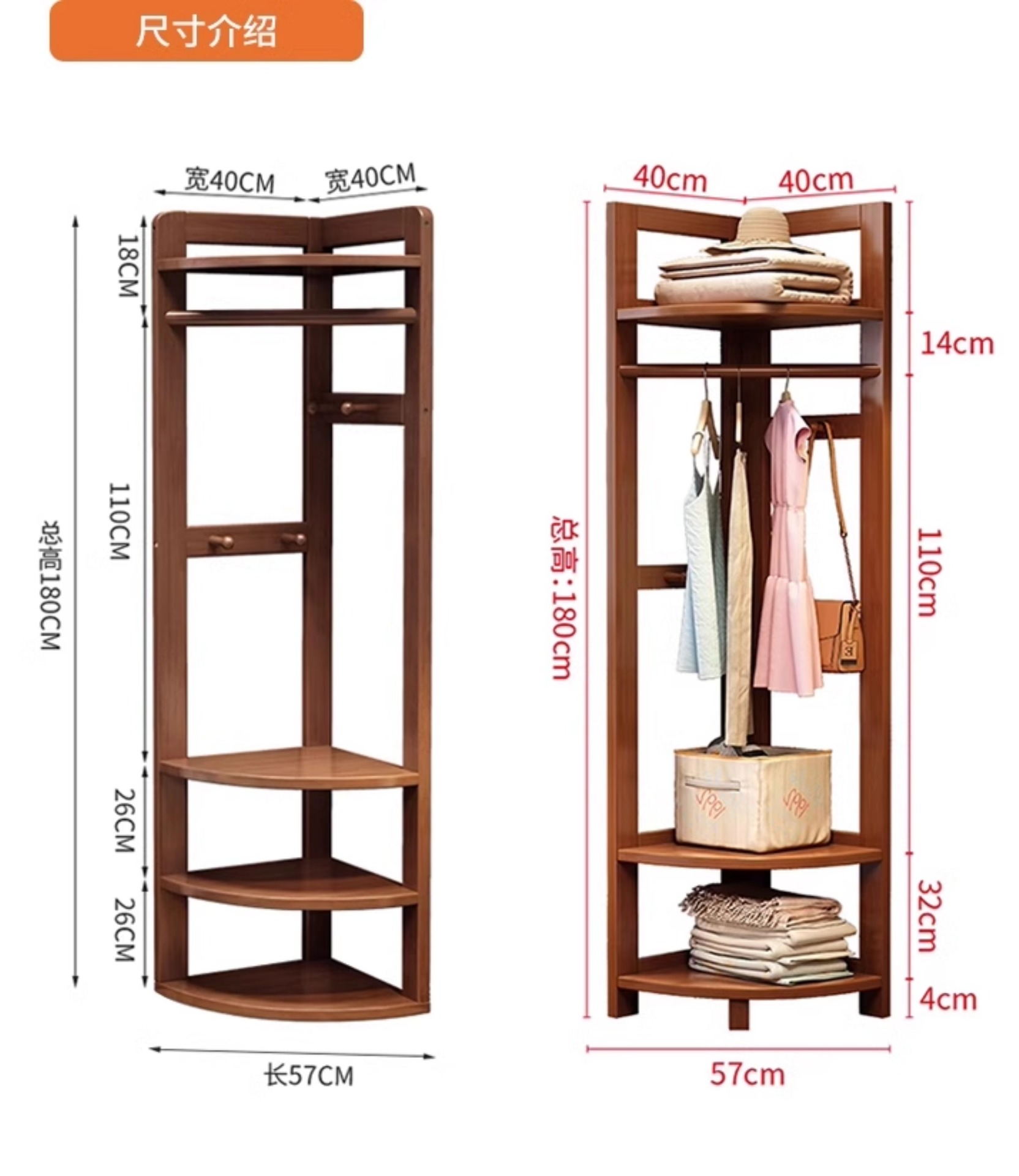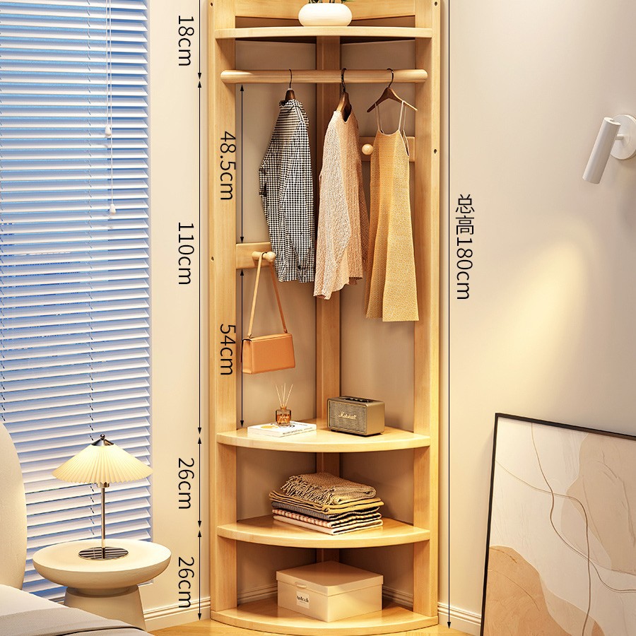 단단한 나무 코너 옷걸이 바닥에서 천장까지 침실 옷걸이 벽 코너 선반 간단한 가정용 코너 옷걸이