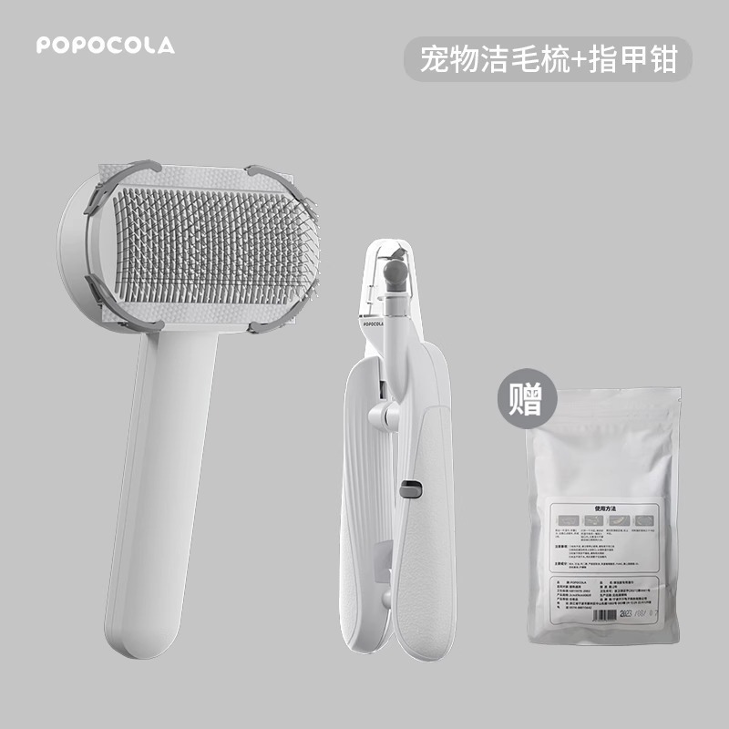 • 애완동물 에어쿠션 빗 [우아한 그레이] + 손톱깎이