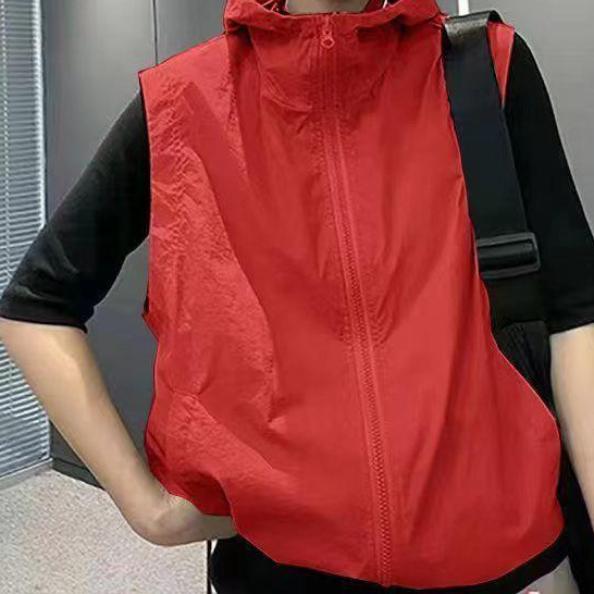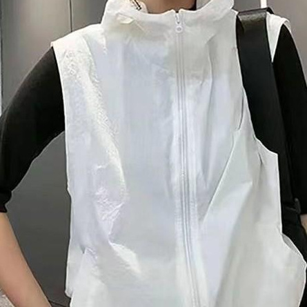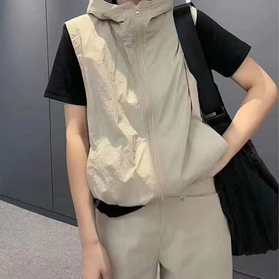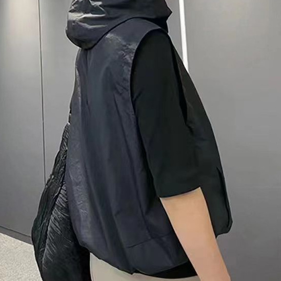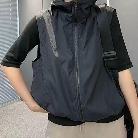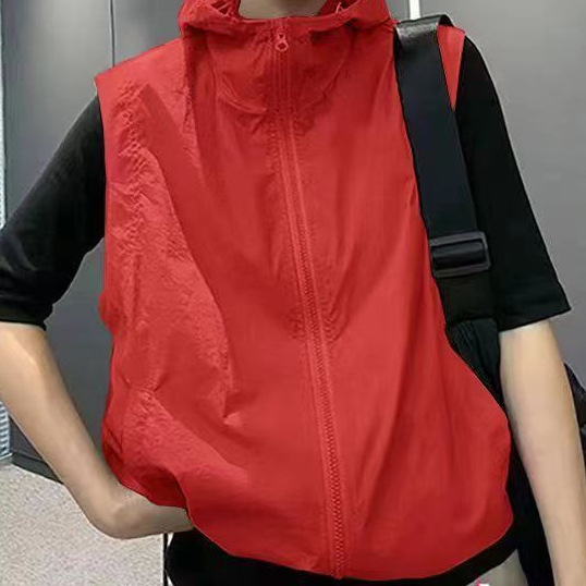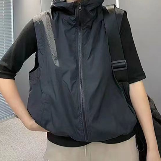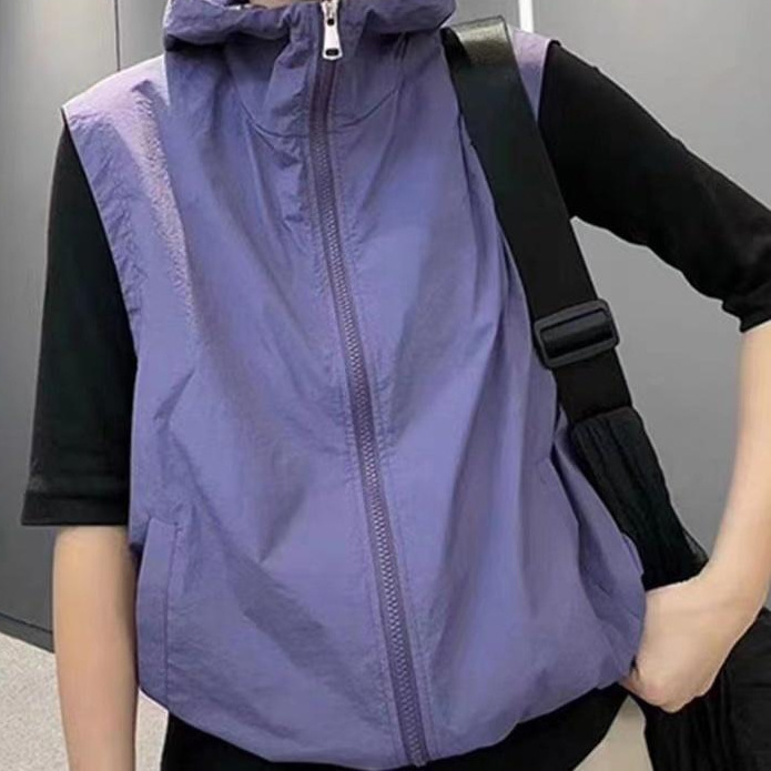 2025 새로운 봄, 가을 얇은 단일 레이어 태양 보호 의류 조끼 여성 느슨한 겉옷 후드 통기성 조끼 자켓 보라색