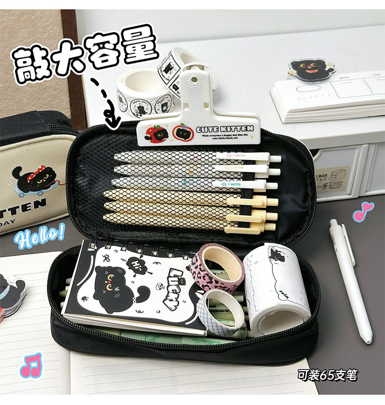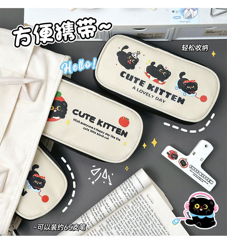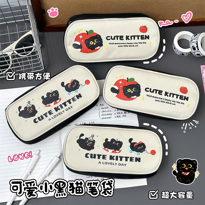 검은 새끼 고양이 캔버스 연필 가방 ins 스타일 대용량 연필 상자 초등 및 중등 학생 간단한 연필 상자 편지지 상자