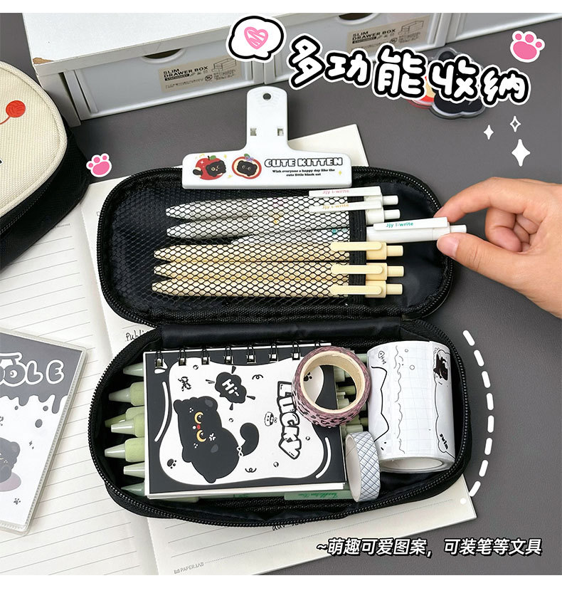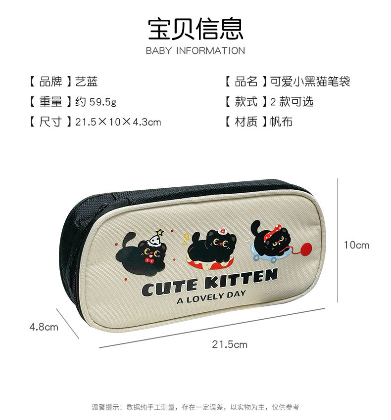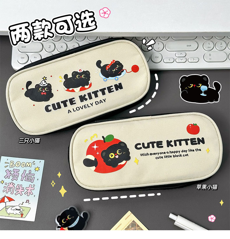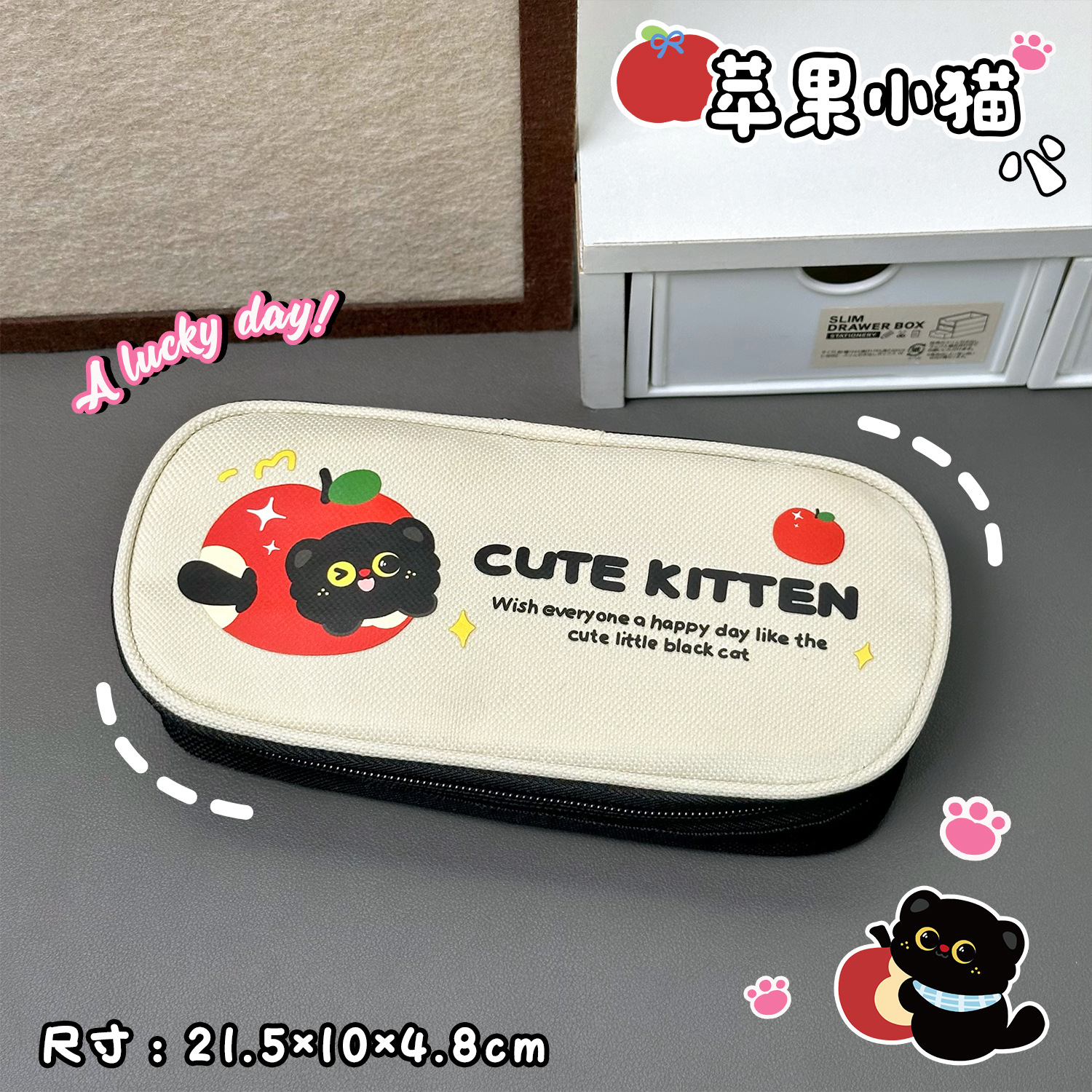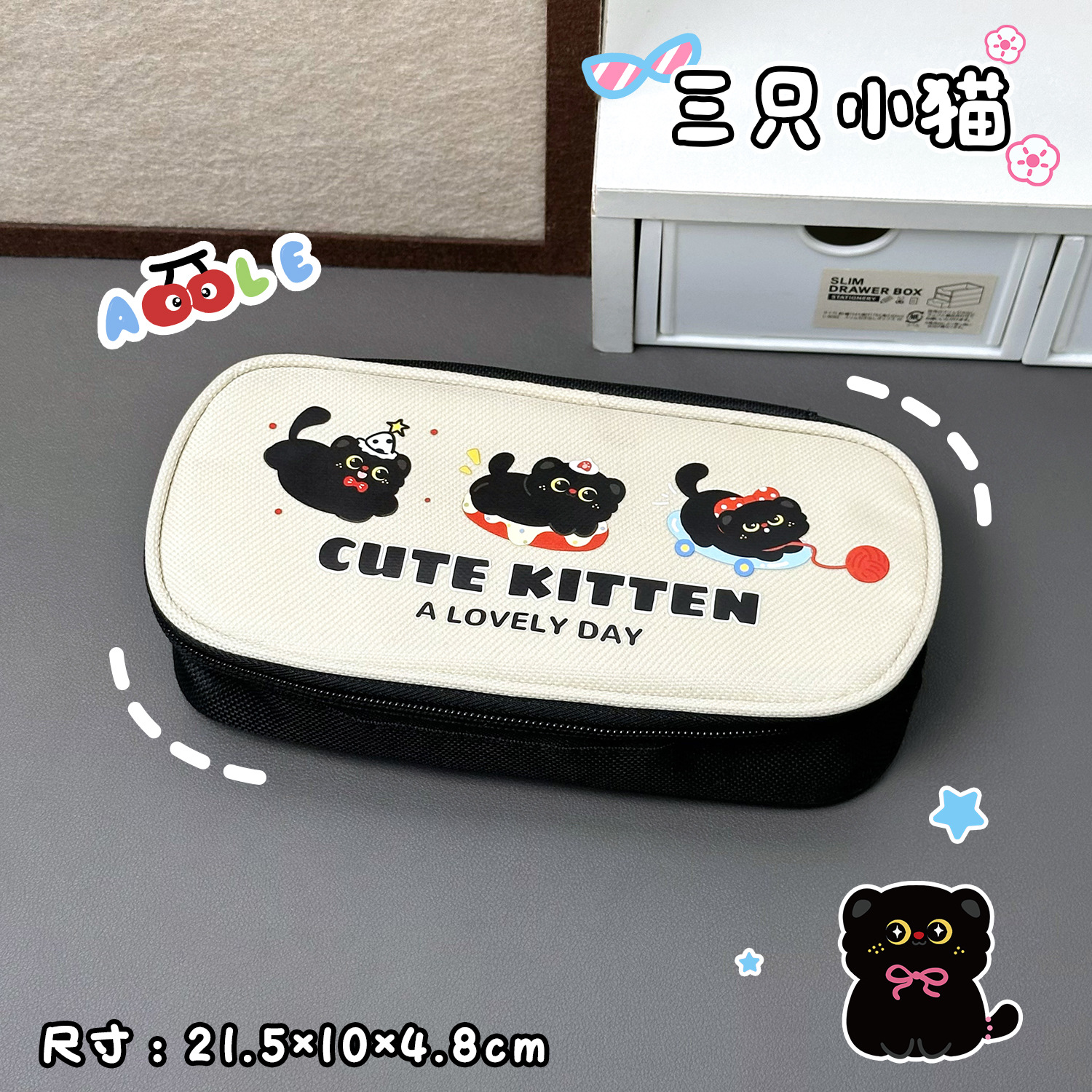 검은 새끼 고양이 캔버스 연필 가방 ins 스타일 대용량 연필 상자 초등 및 중등 학생 간단한 연필 상자 편지지 상자스토어 가기