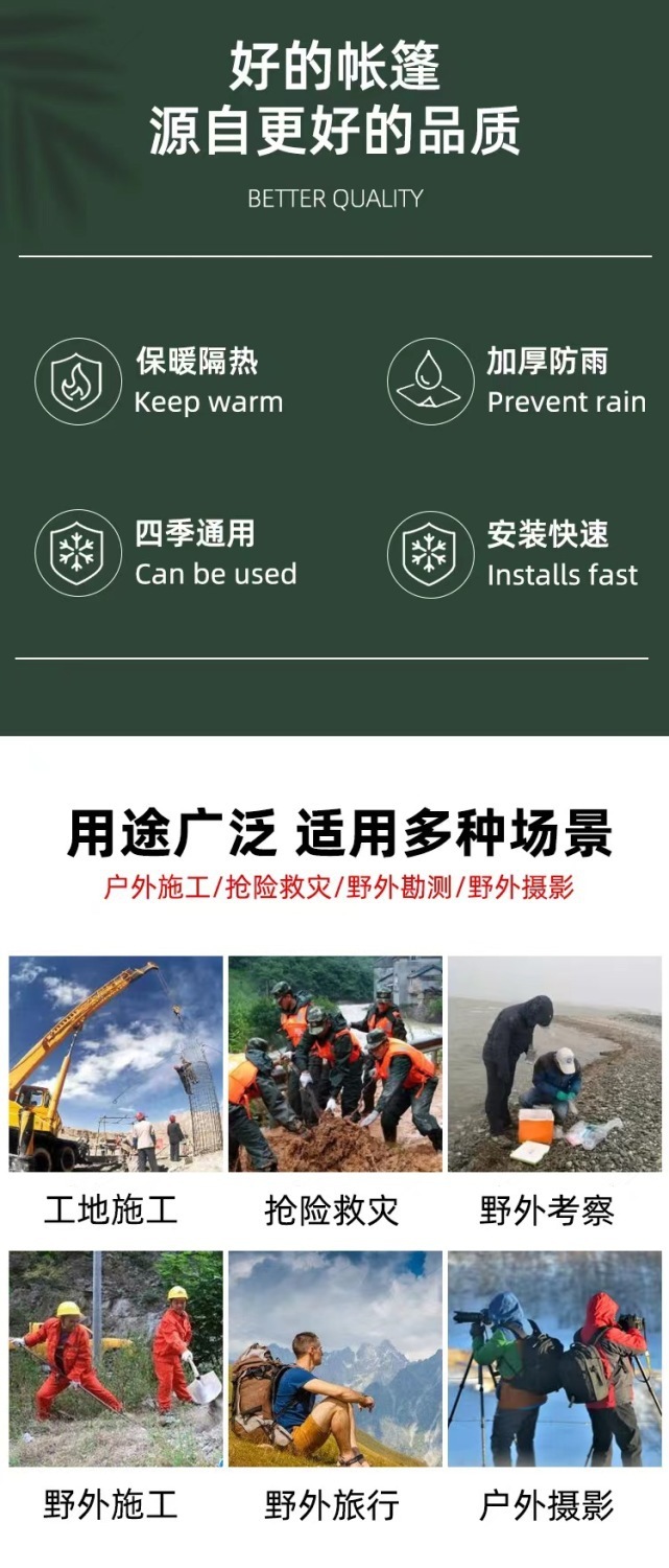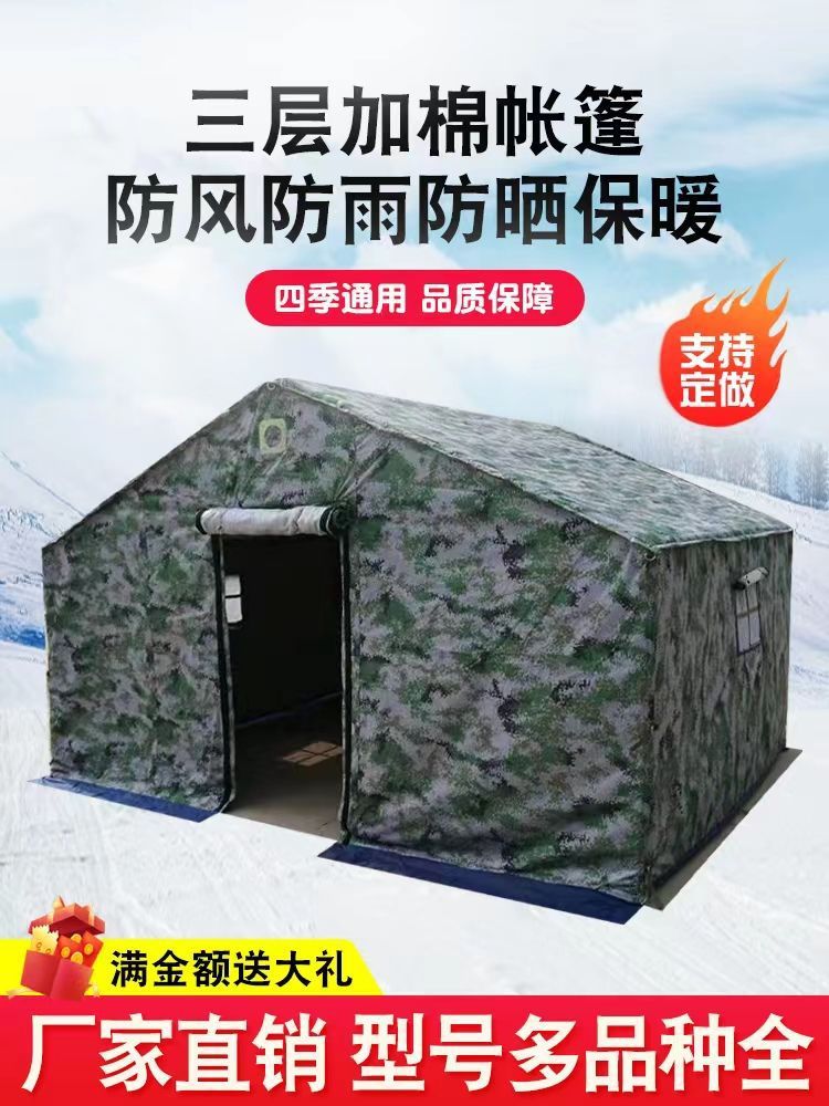 야외 건설 현장 텐트, 방수 소형 주택, 야외 군용 면 텐트, 따뜻하고 두꺼운 재해 구호 대형 캔버스 사육