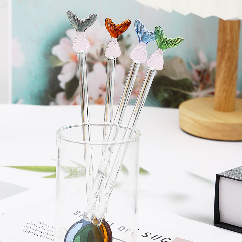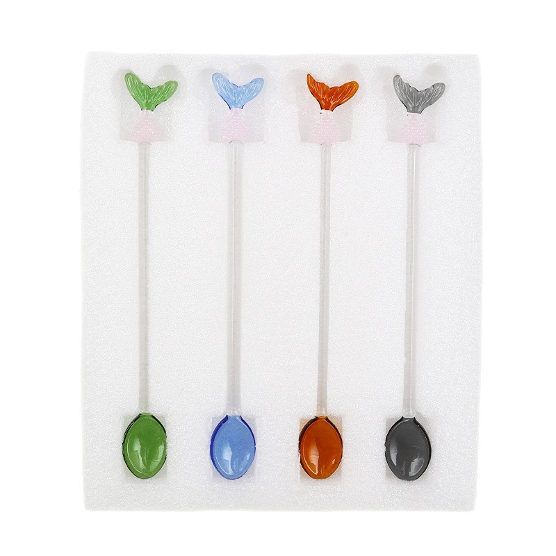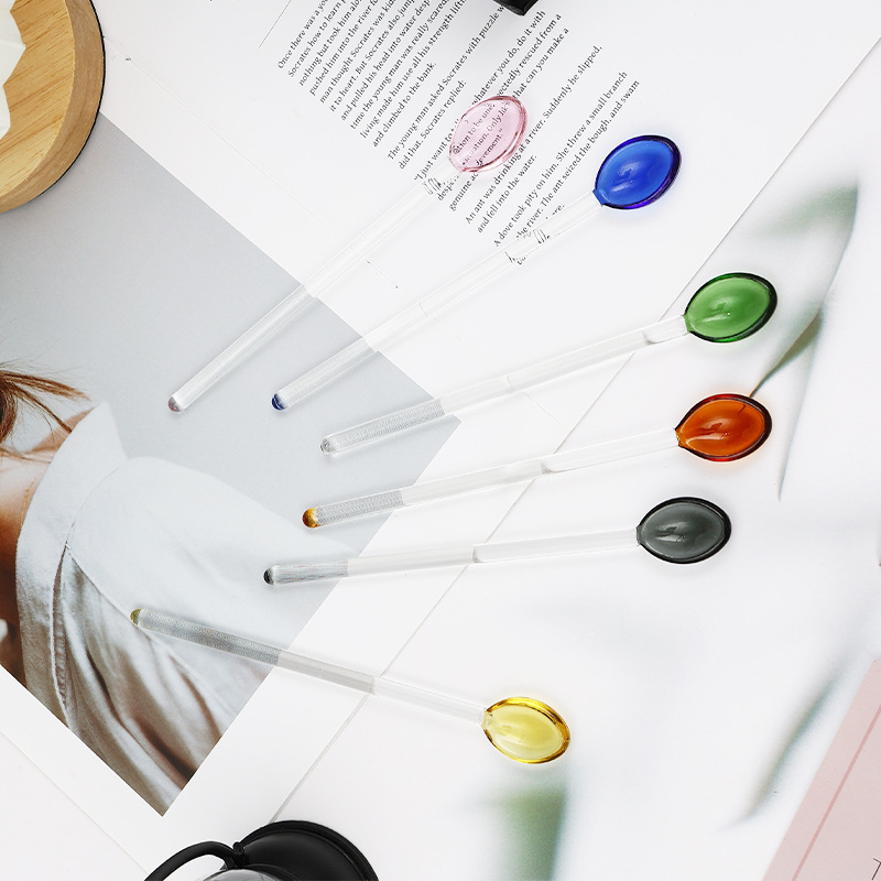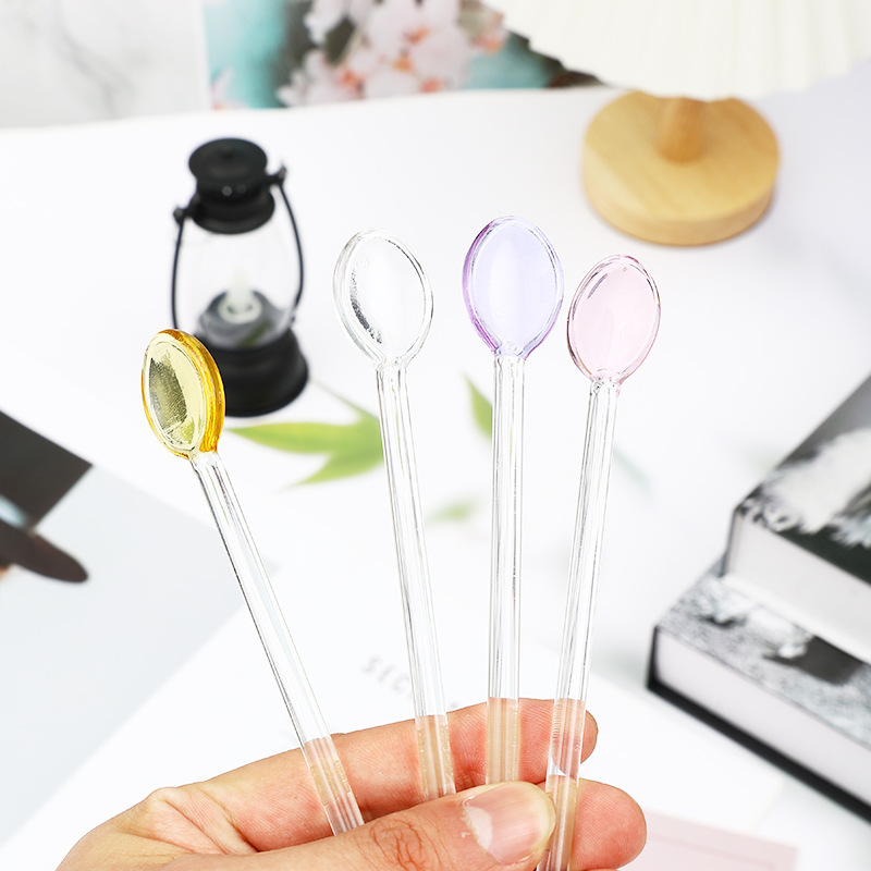 사랑스러운 귀여운 컬러 유리 스푼 귀여운 긴 손잡이 커피 유리 교반 스푼 유리 스푼