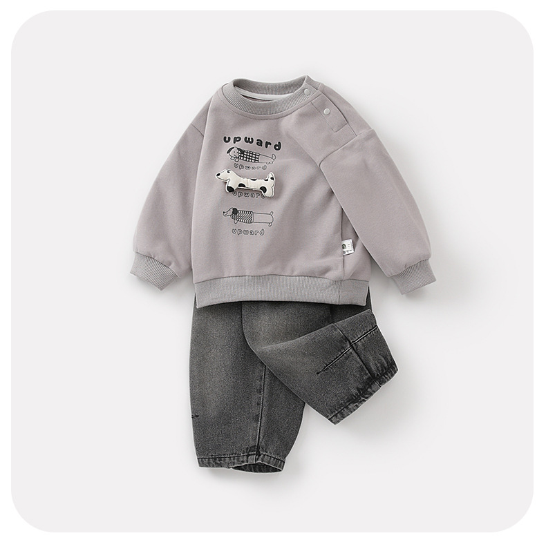 영유아 2025 가을 신상 입체 스웨트 캐주얼 슈트 베이비 한국식 탑과 청바지 투피스 트렌디 세트