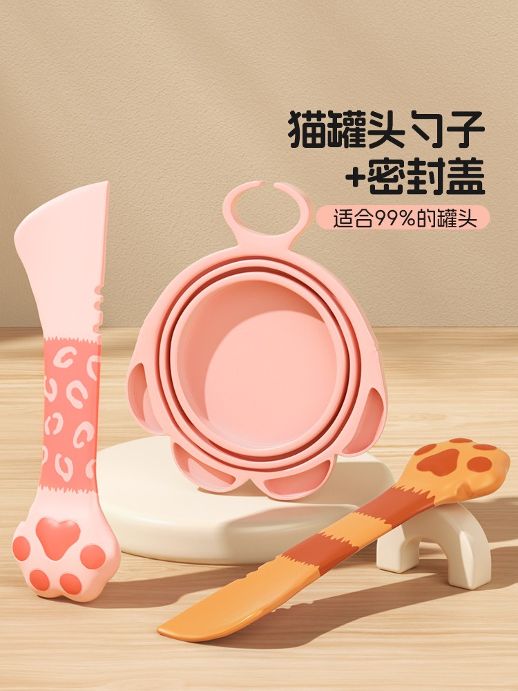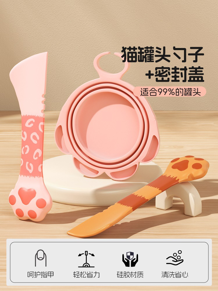 애완용 고양이 통조림 밀봉 뚜껑 스푼 개와 고양이 발톱 캔 오프너 스쿠프 유물 밀봉 및 보존 실리콘 뚜껑