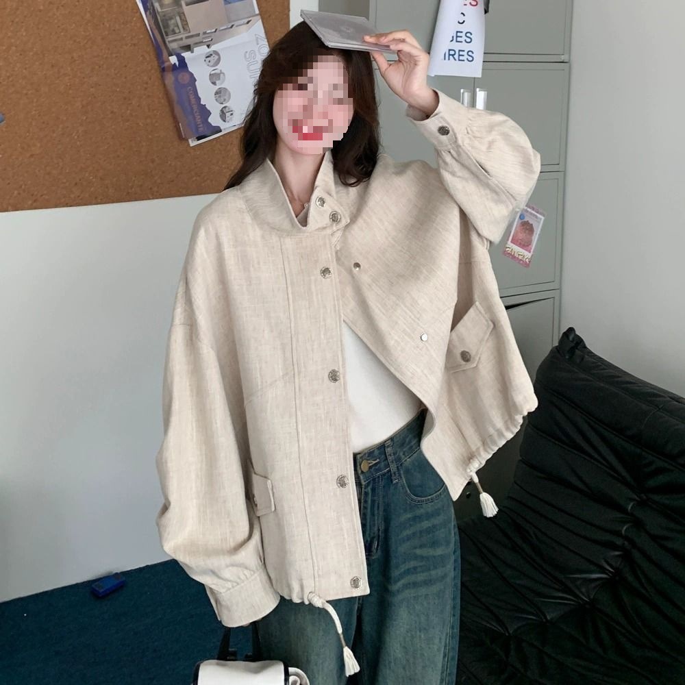 루즈한 작업복, 활용도 높은 베이지 재킷 탑, 패셔너블한 작은 향기로운 스타일의 짧은 살구색 캐주얼 재킷, 여성 신작 가을스토어 가기