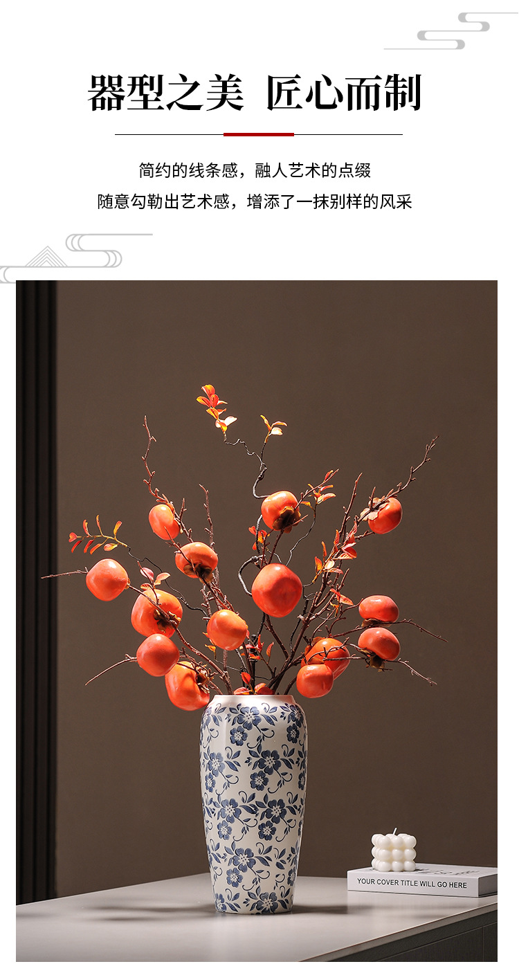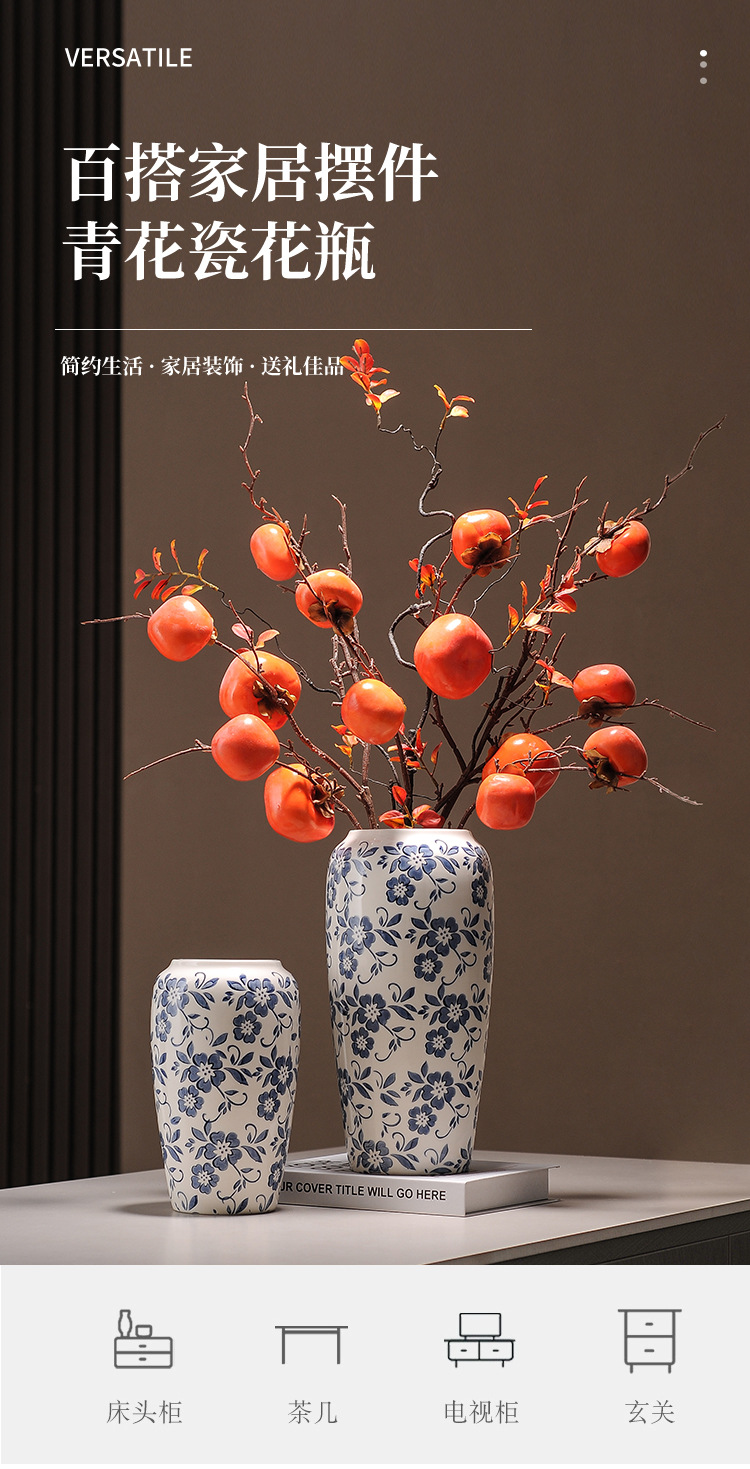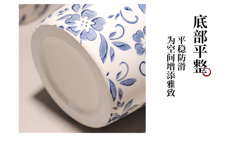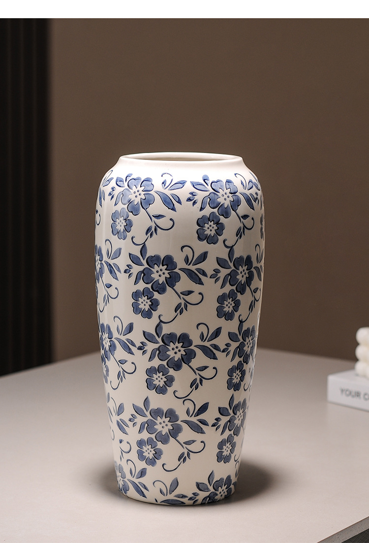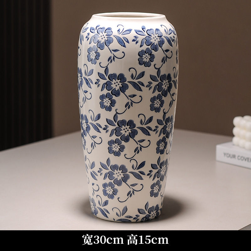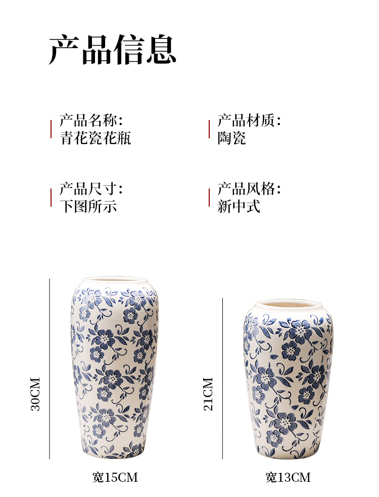 대형 세라믹 꽃병 새로운 중국 스타일 Jingdezhen 파란색과 흰색 도자기 꽃 용기 거실 커피 테이블 꽃꽂이 고급 장식품스토어 가기