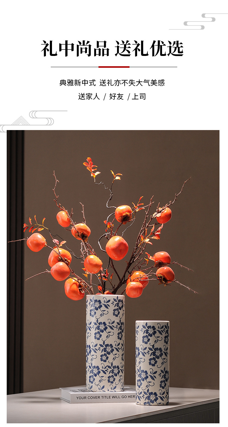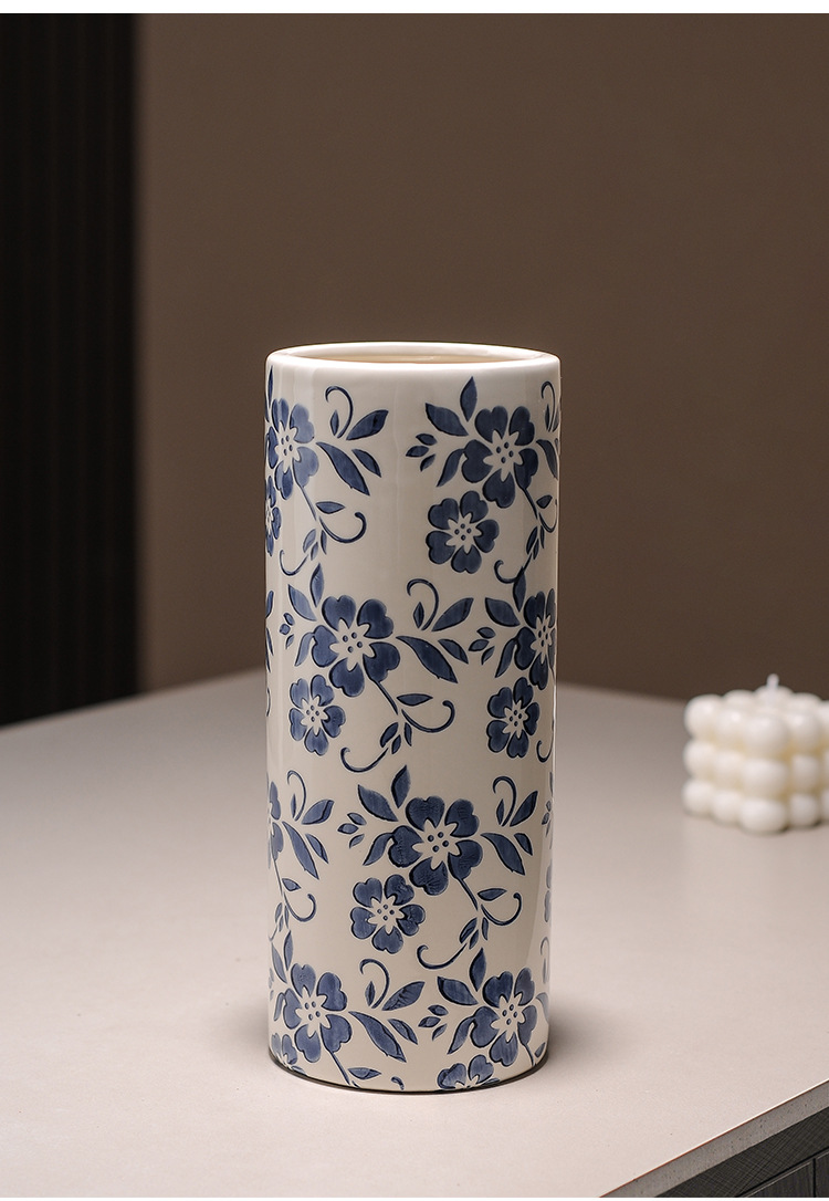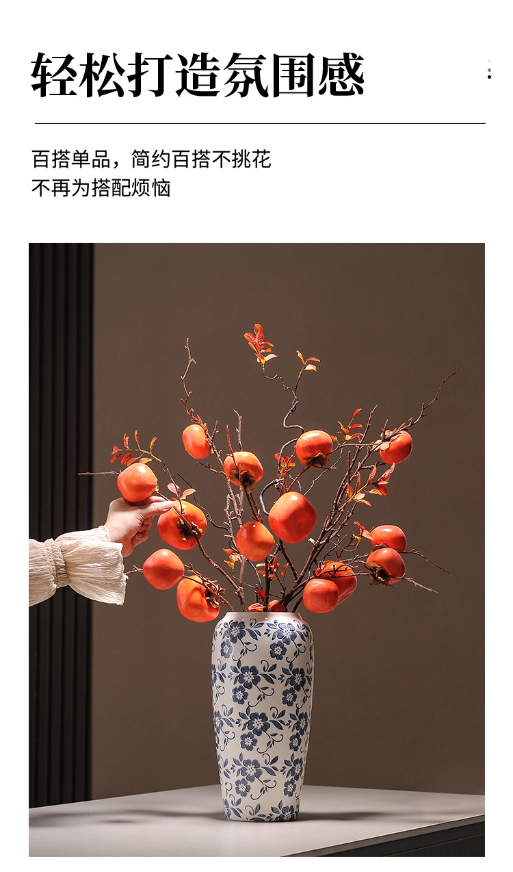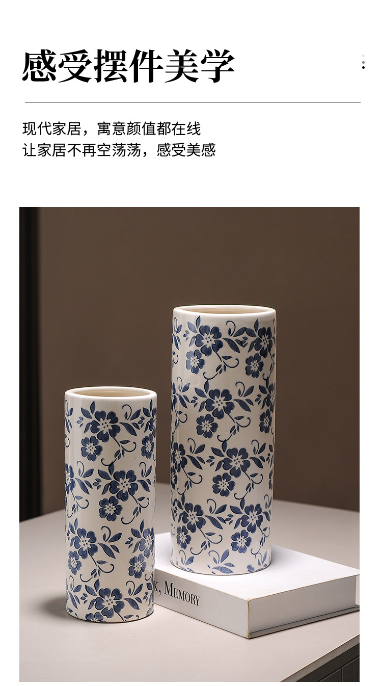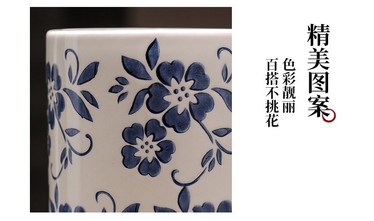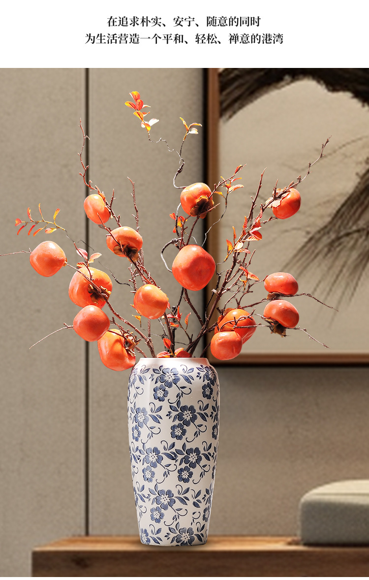 대형 세라믹 꽃병 새로운 중국 스타일 Jingdezhen 파란색과 흰색 도자기 꽃 용기 거실 커피 테이블 꽃꽂이 고급 장식품스토어 가기