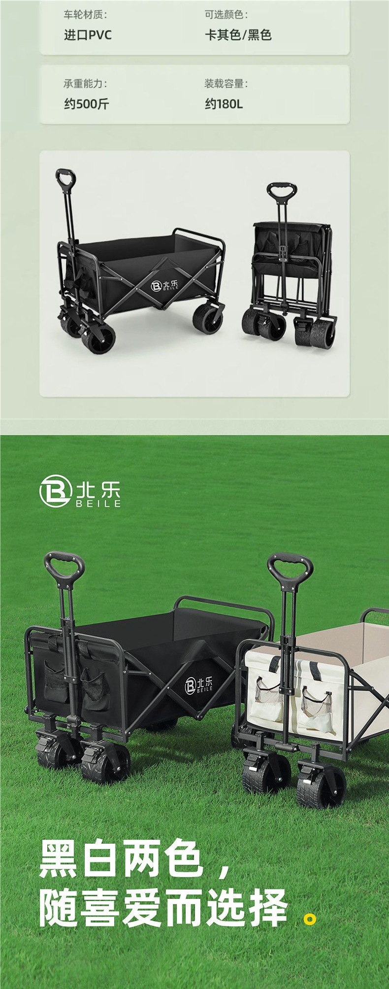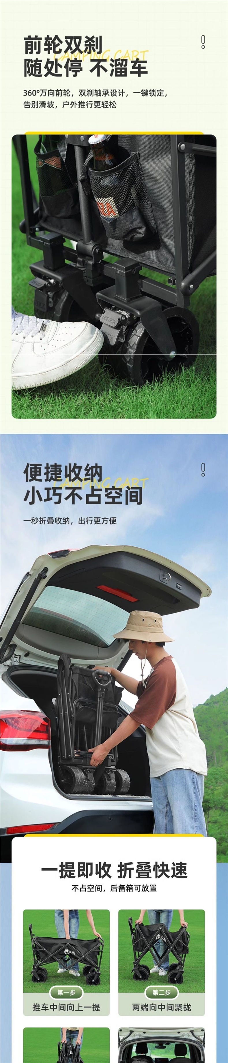 • 야외 캠핑 카트 [강화 강철/내성 및 내구성] 다채로운 여행 시즌 - 강화 휠 [400 Jing H 기계식 이중 브레이크] - 다크 65개만 남음