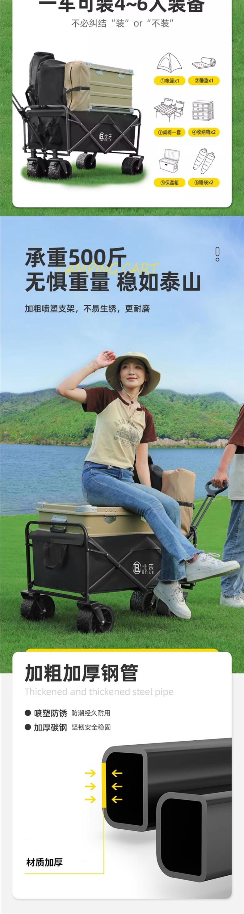 • 야외 캠핑 카트 [강화강철/내충격 및 내하중] 다채로운 여행 시즌 - [카트 + 테이블 패키지 아래]