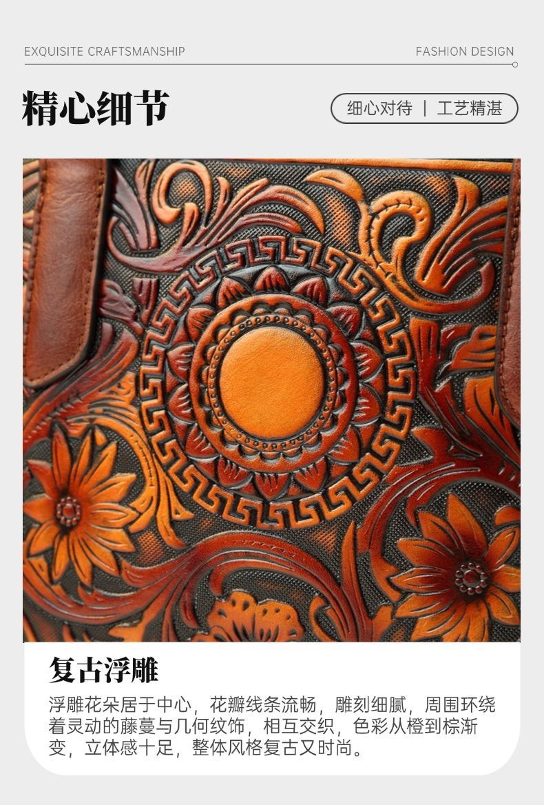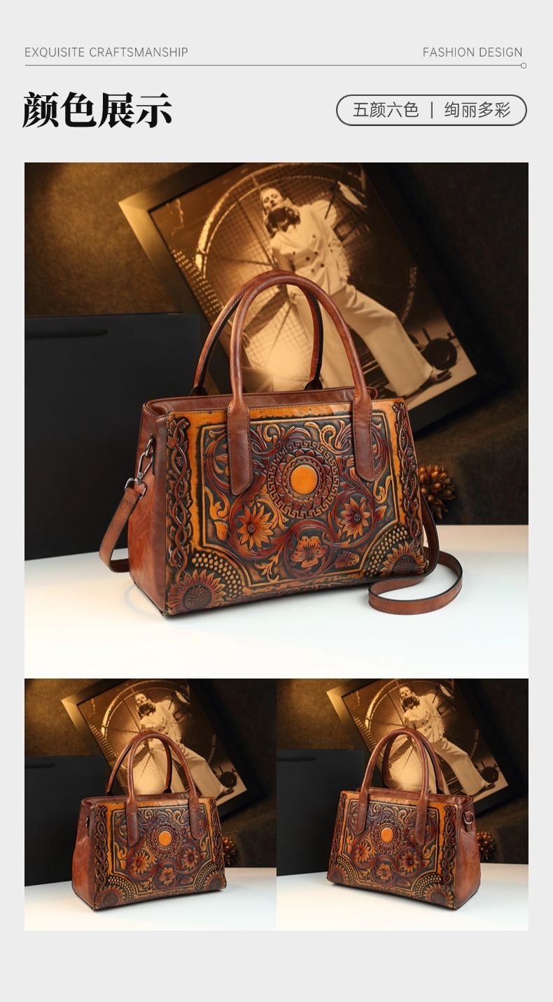 대기 2025 복고풍 여성용 가방 양각 꽃 토트 백 정품 가죽 새로운 민족 스타일 싱글 숄더 크로스 바디 백 대용량스토어 가기