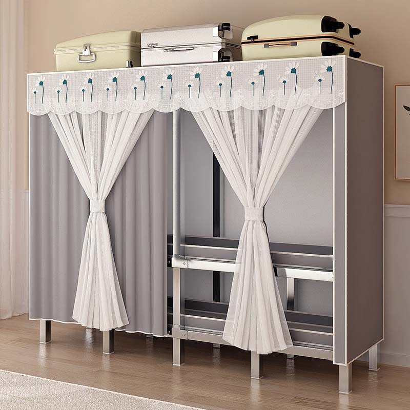 [재고 있음] 침실 및 가정용으로 강화된 전체 강철 프레임이 있는 일체형 설치가 필요 없는 접이식 간이 옷장