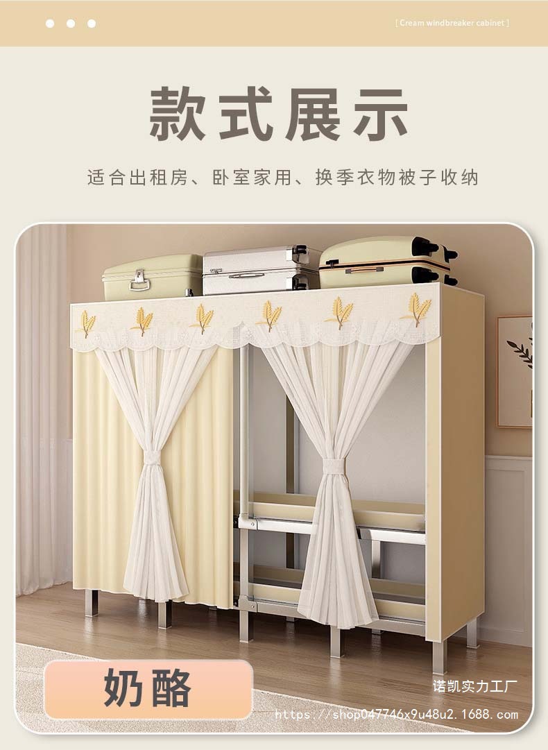 [재고 있음] 침실 및 가정용으로 강화된 전체 강철 프레임이 있는 일체형 설치가 필요 없는 접이식 간이 옷장스토어 가기