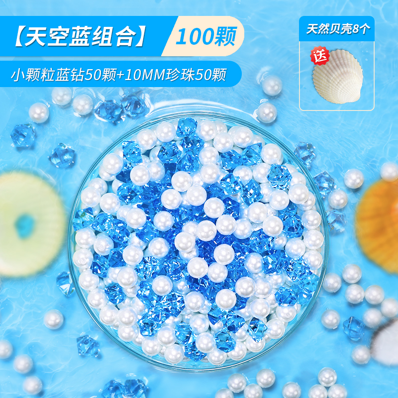 • [스카이블루 조합] 작은 블루 다이아몬드 50개 + 10mm 진주 50개