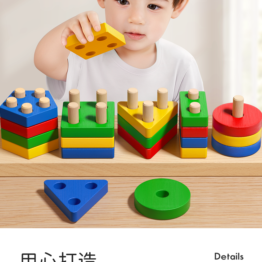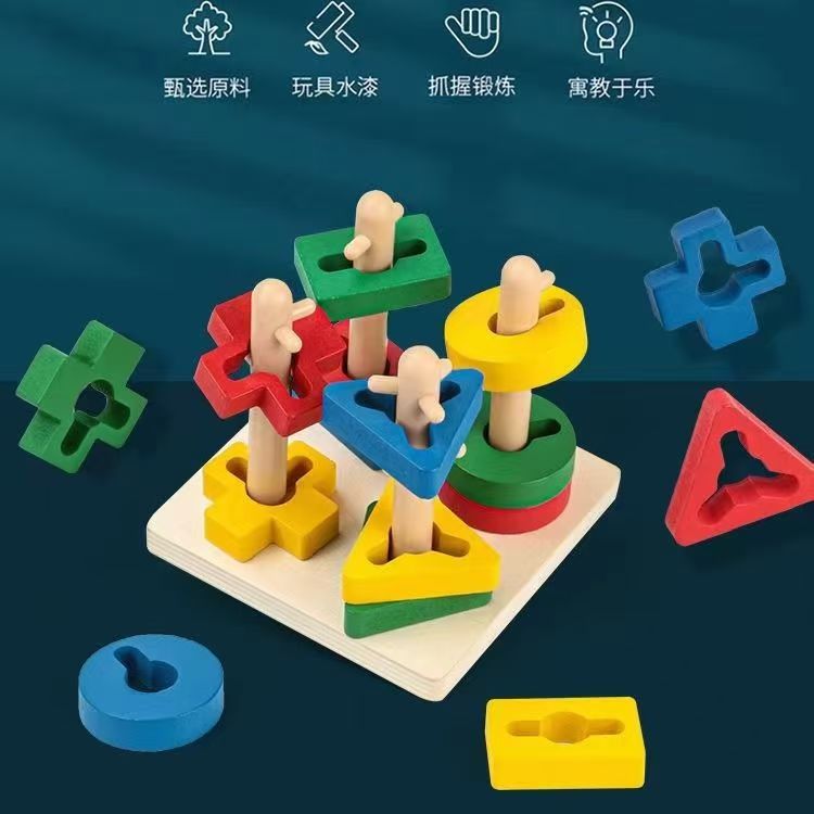 몬테소리 기하학적 모양 세트 컬럼 매칭 빌딩 블록 장난감 어린이 조기 교육 조립 소년과 소녀 아기 1-3 세 6스토어 가기