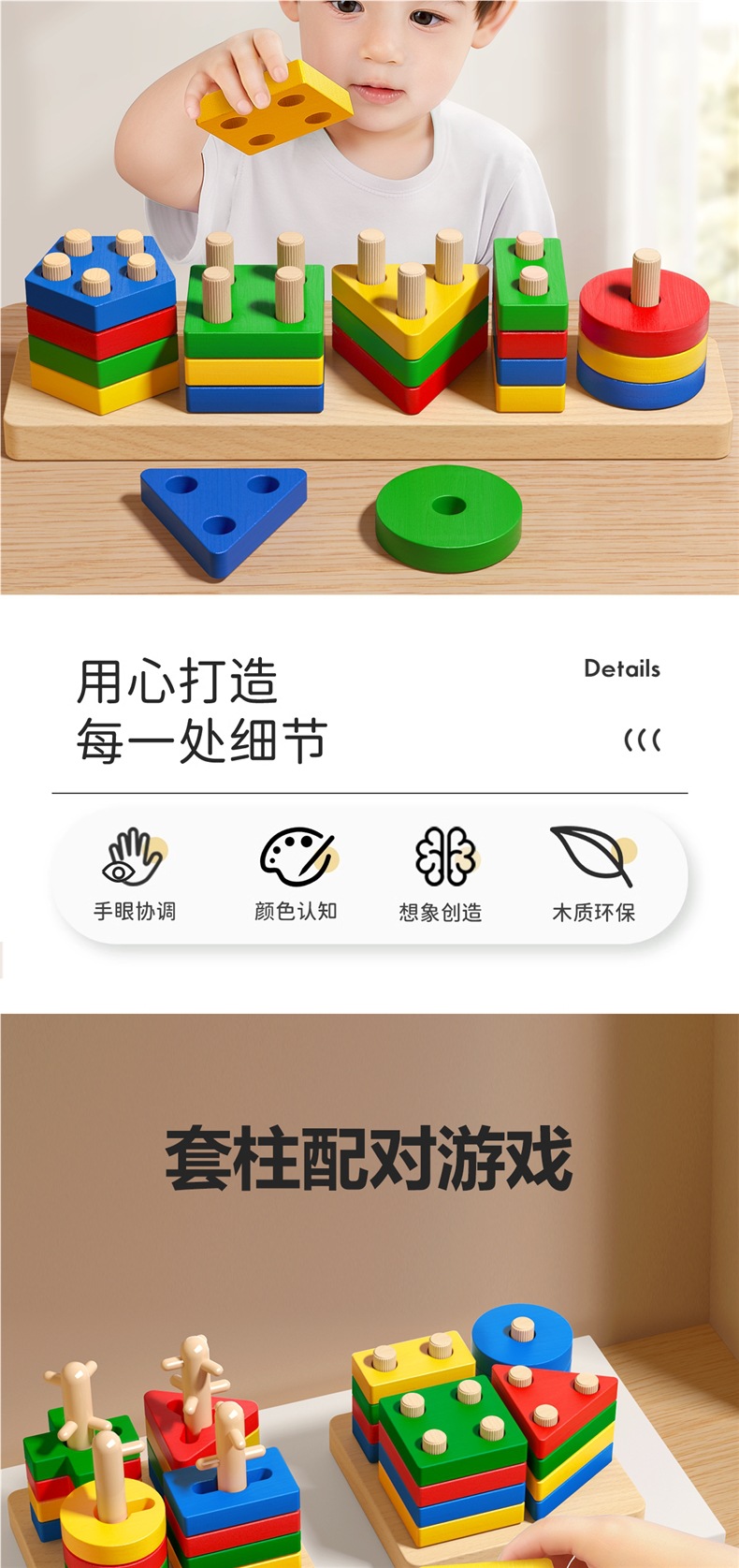 몬테소리 기하학적 모양 세트 컬럼 매칭 빌딩 블록 장난감 어린이 조기 교육 조립 소년과 소녀 아기 1-3 세 6