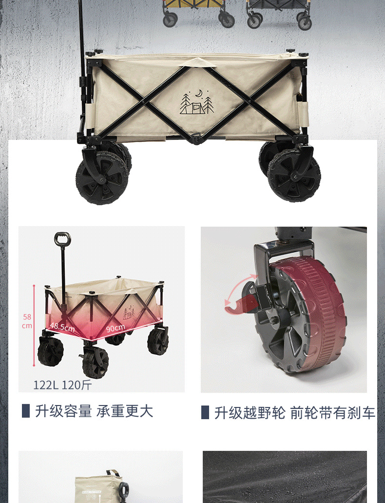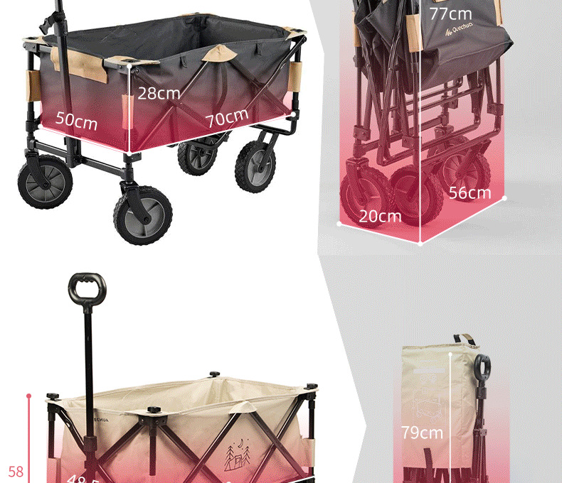 ✅ 8N Decathlon 야외 접이식 트롤리 캠핑 휴대용 피크닉 트롤리 캠핑 트레일러 쇼핑 카트 식료품 쇼핑 트롤리스토어 가기