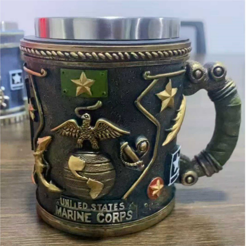 外贸爆款立体朋克茶杯不锈钢V6V8咖啡杯机械发动机引擎马克杯杯马克杯