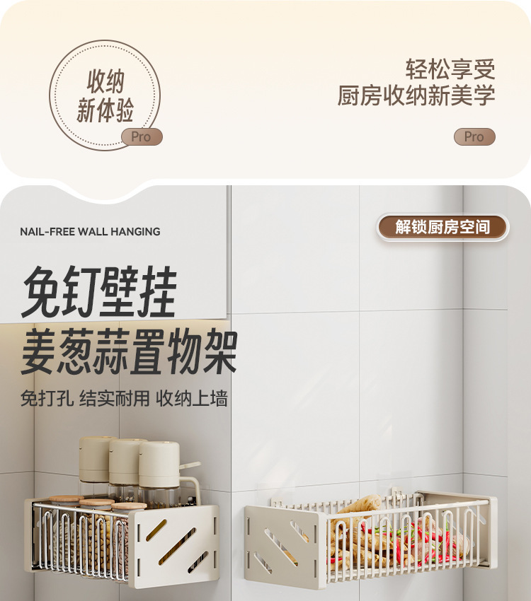 구멍이 없는 새로운 다기능 조미료 보관 상자, 가정용 벽걸이형 야채 바구니 보관함, 양파, 생강 및 마늘 보관함스토어 가기