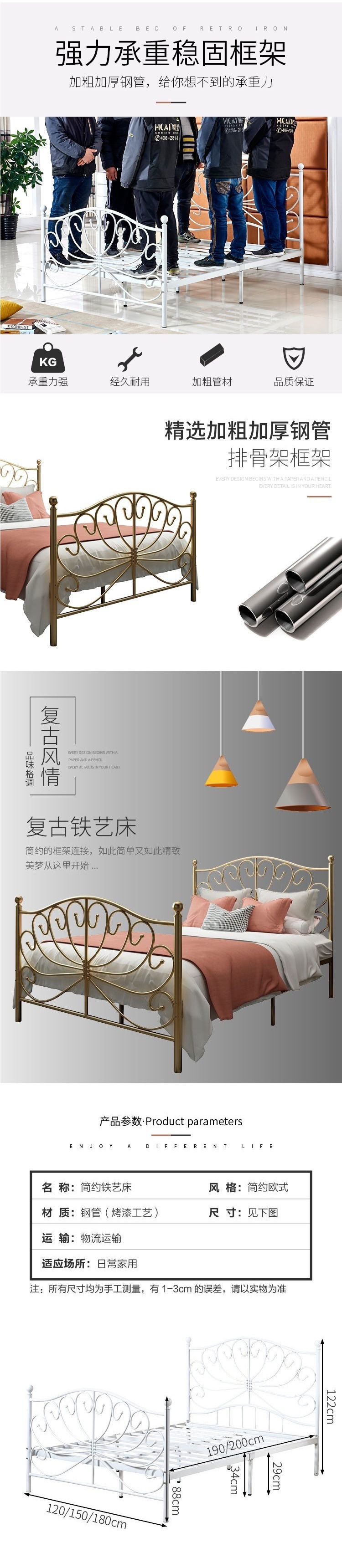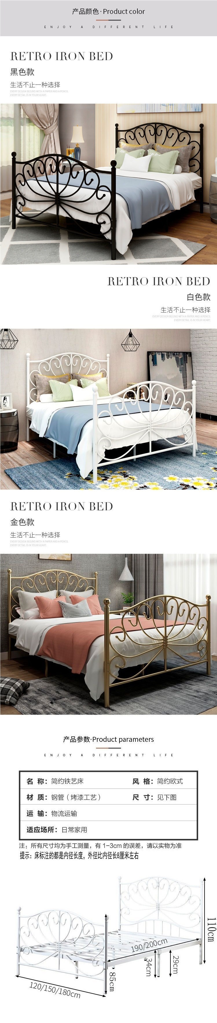 북유럽 스타일 인터넷 연예인 철제 침대 현대 간단한 공주 침대 두꺼운 철 침대 싱글 더블 침대 1.5 철 프레임 침대스토어 가기