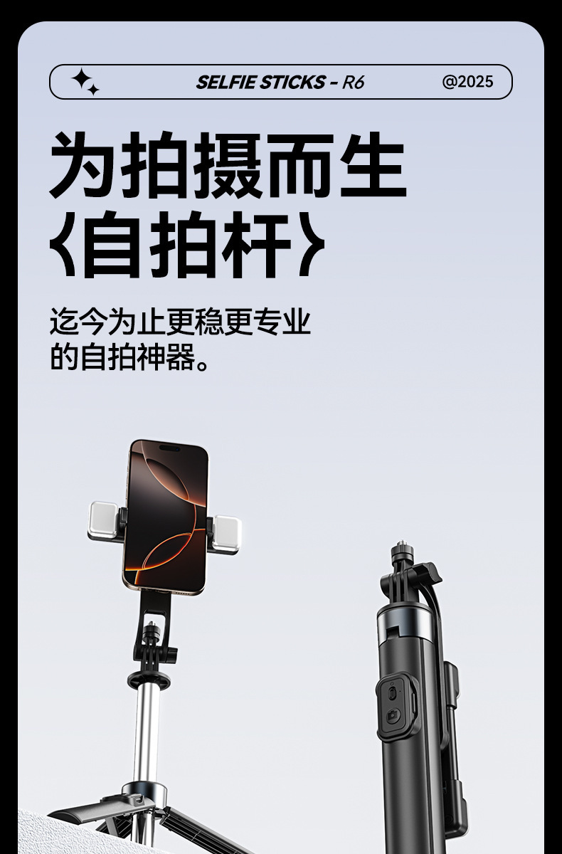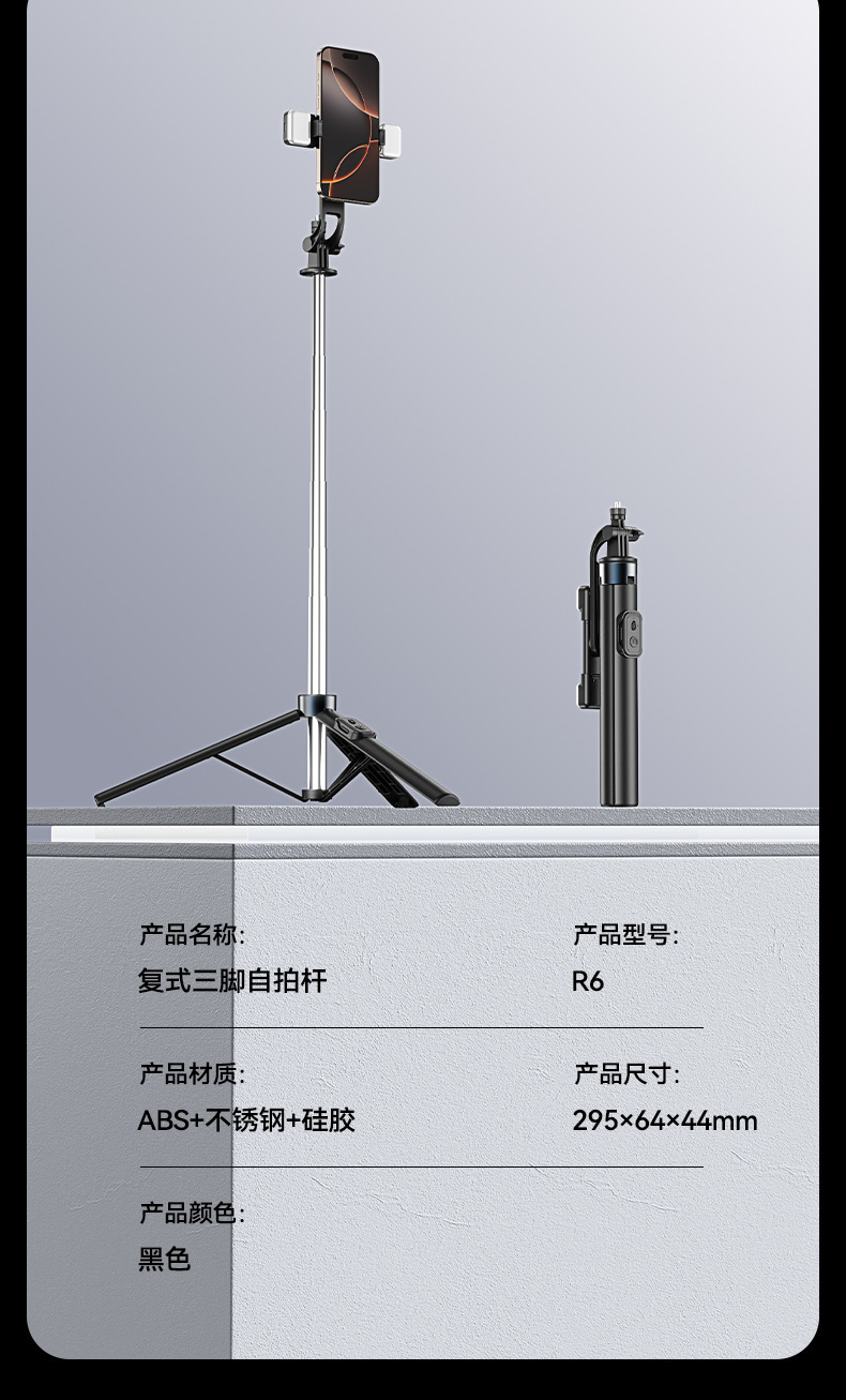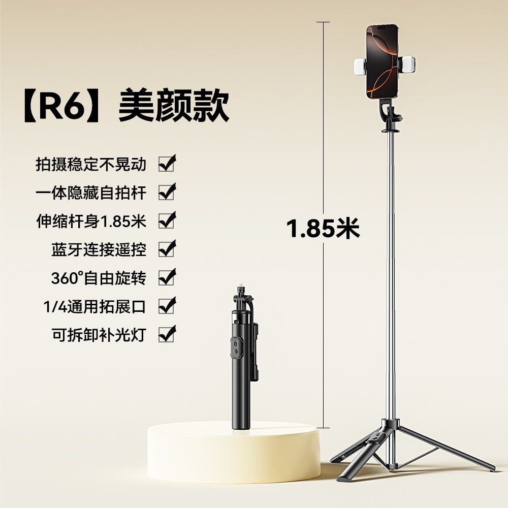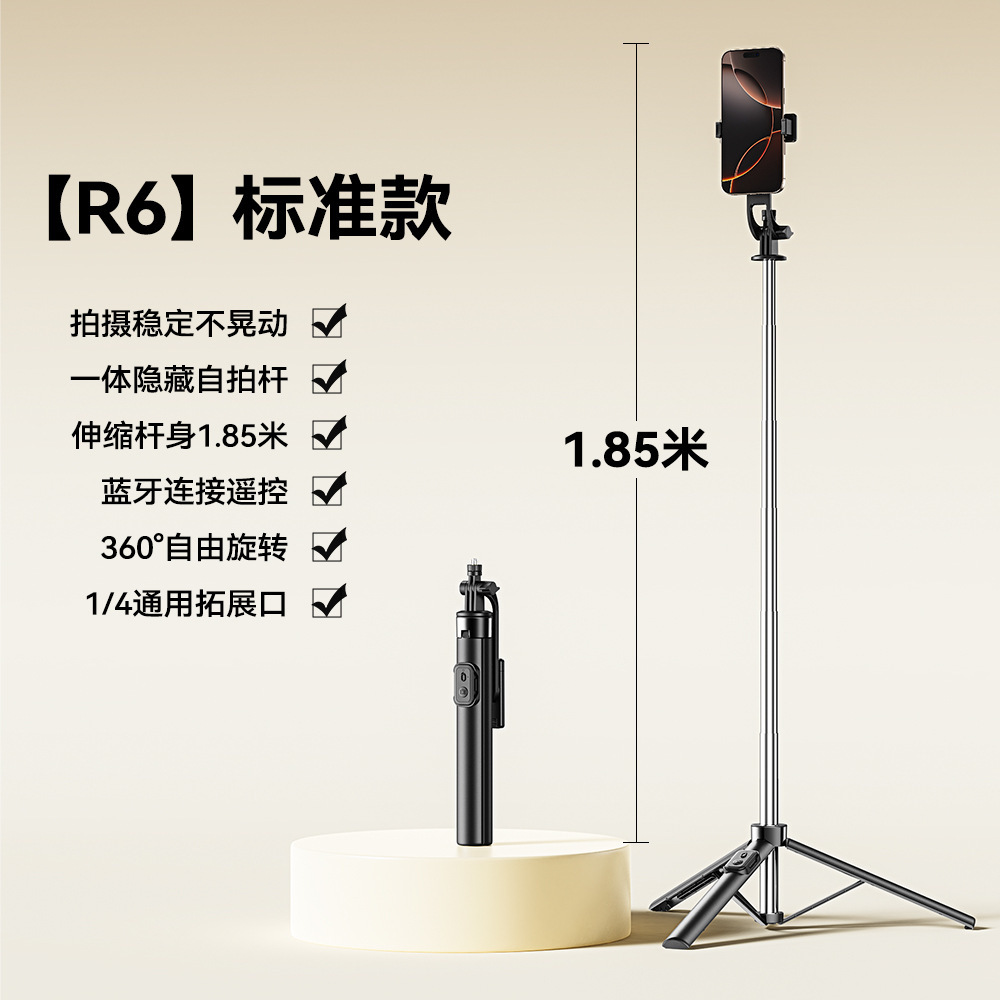 새로운 R6 셀카 스틱 스테인레스 스틸 삼각대 텔레스코픽 플로어 라이브 방송 스탠드 촬영 사진 휴대 전화 셀카 스틱