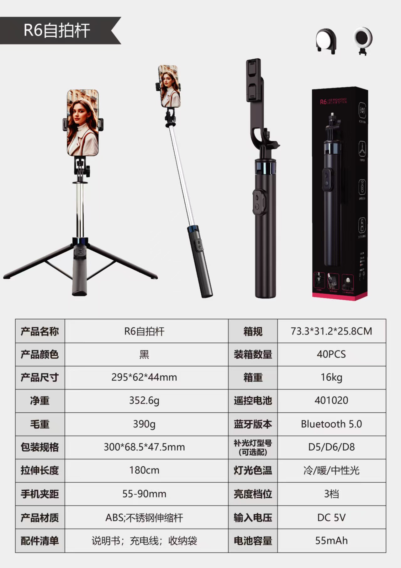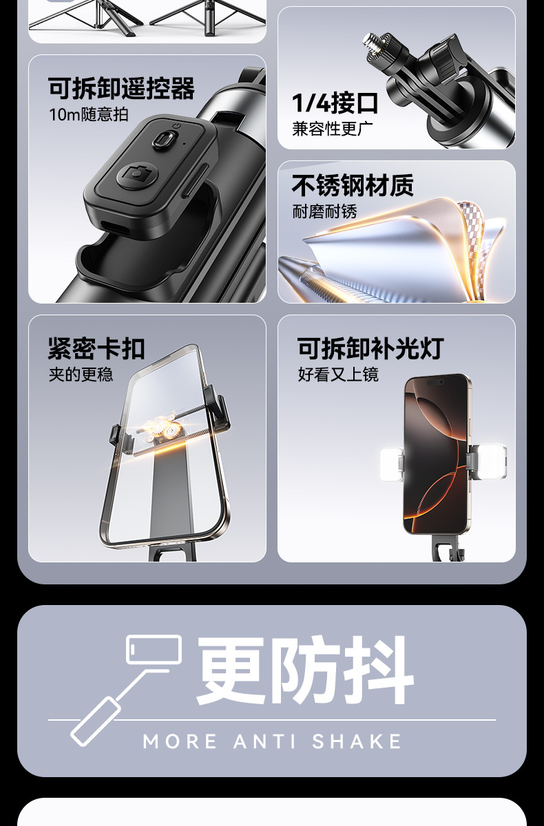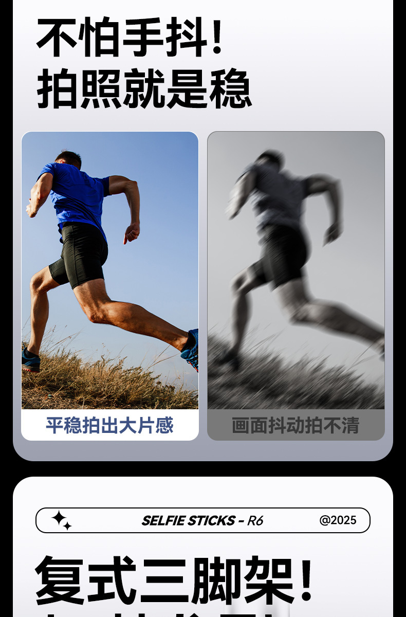 새로운 R6 셀카 스틱 스테인레스 스틸 삼각대 텔레스코픽 플로어 라이브 방송 스탠드 촬영 사진 휴대 전화 셀카 스틱