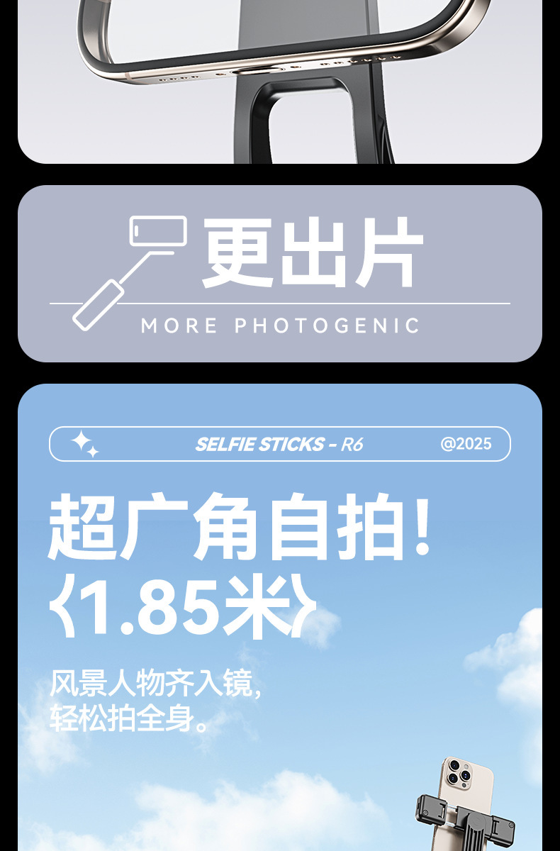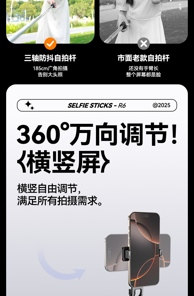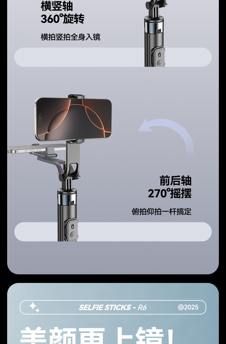 새로운 R6 셀카 스틱 스테인레스 스틸 삼각대 텔레스코픽 플로어 라이브 방송 스탠드 촬영 사진 휴대 전화 셀카 스틱스토어 가기