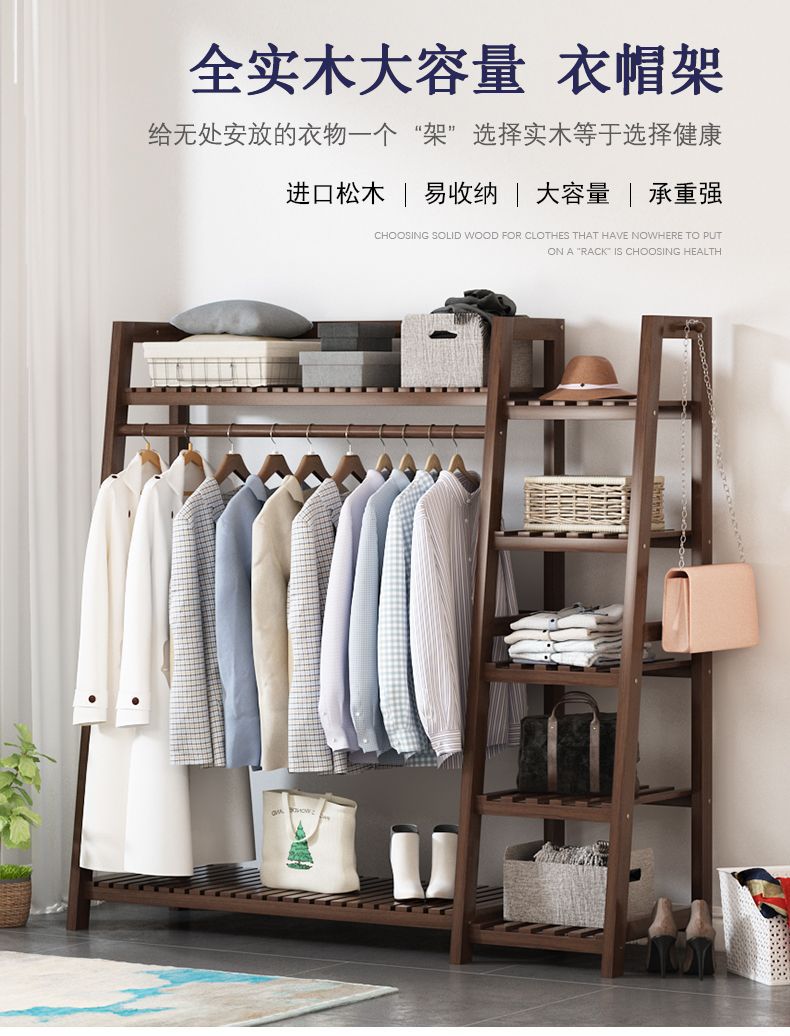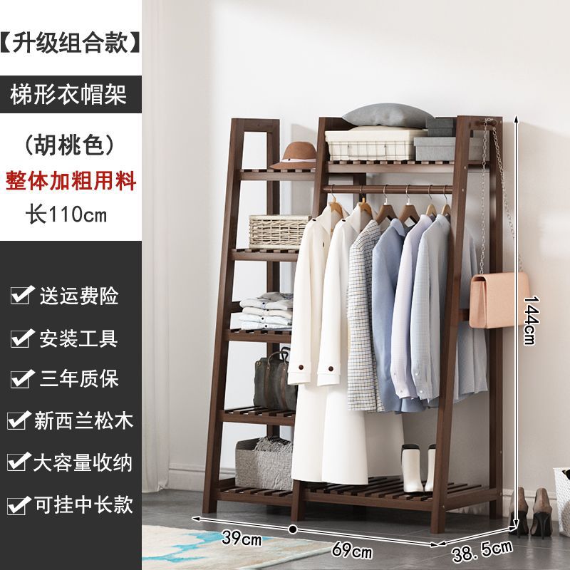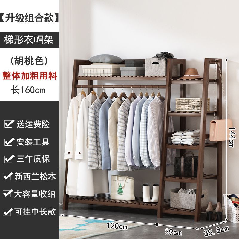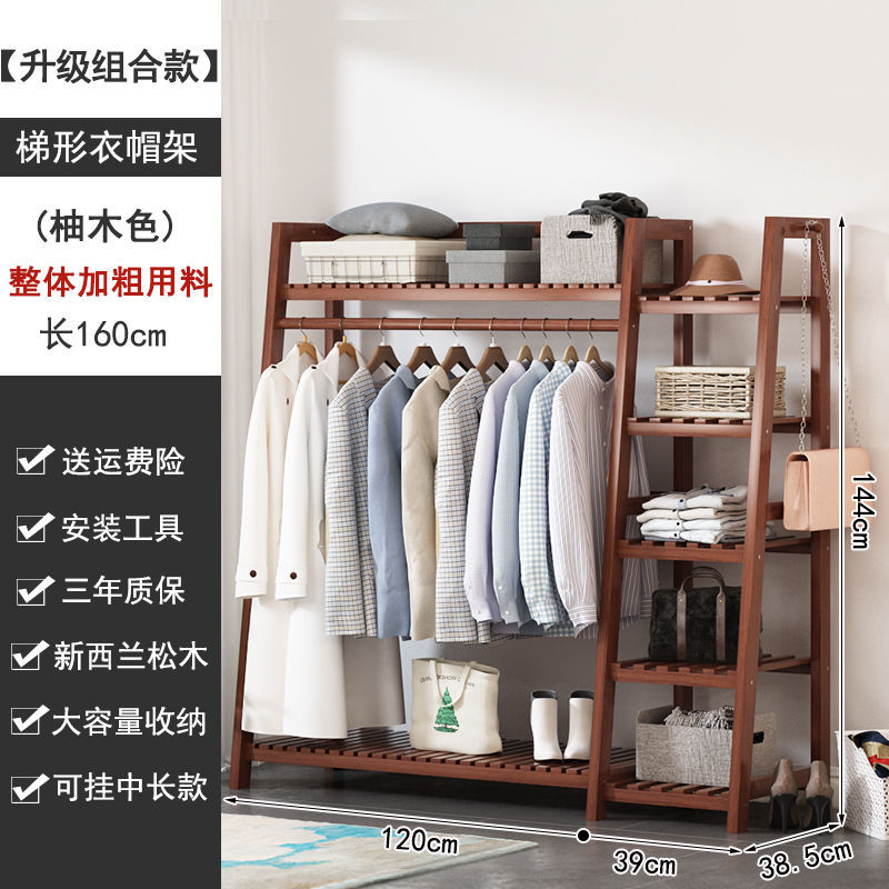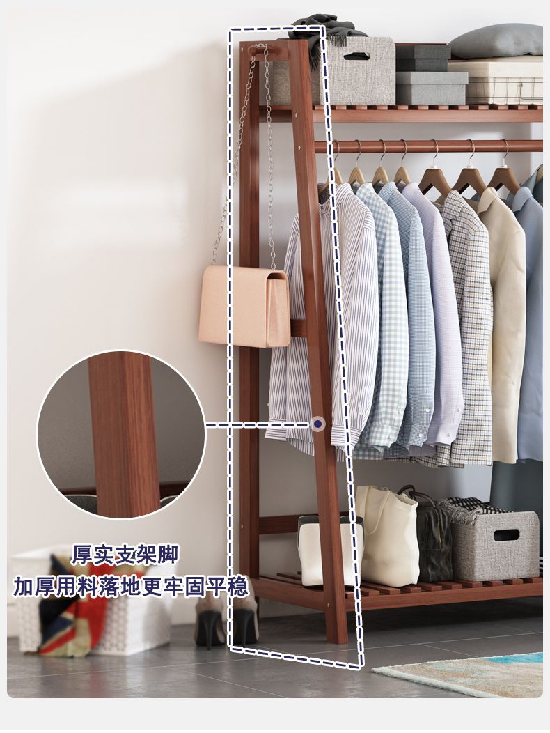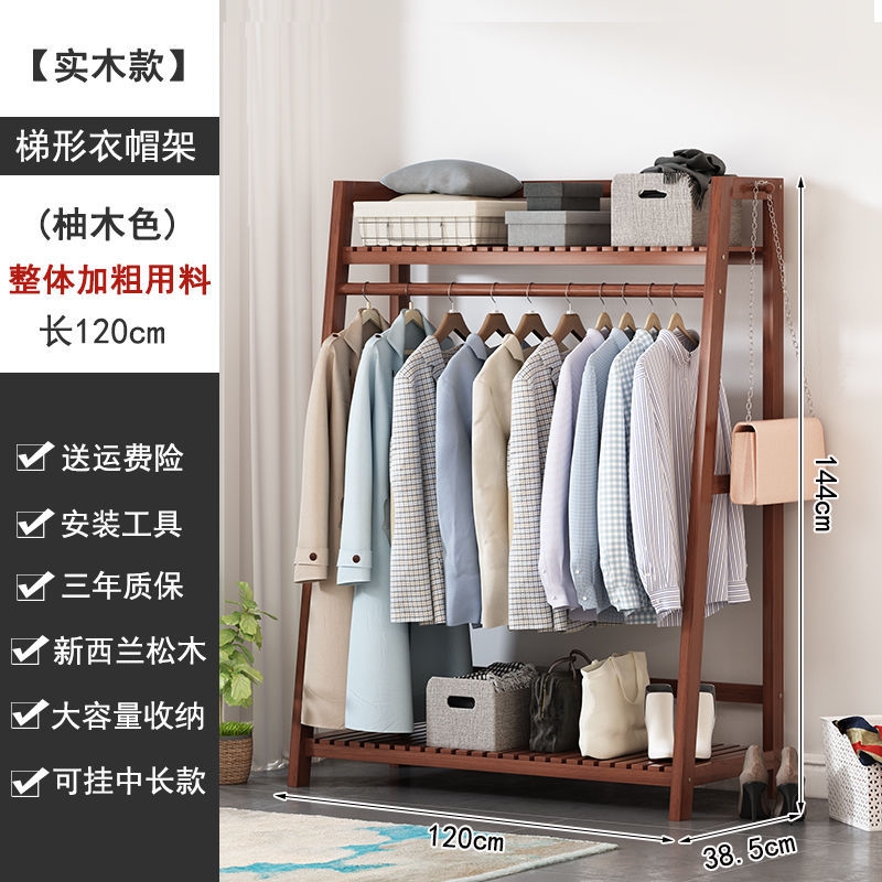 단단한 나무 바닥 걸이 옷걸이 두꺼운 침실 간단한 코트 랙 다기능 옷장 옷 보관 랙 나무스토어 가기