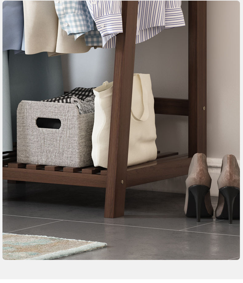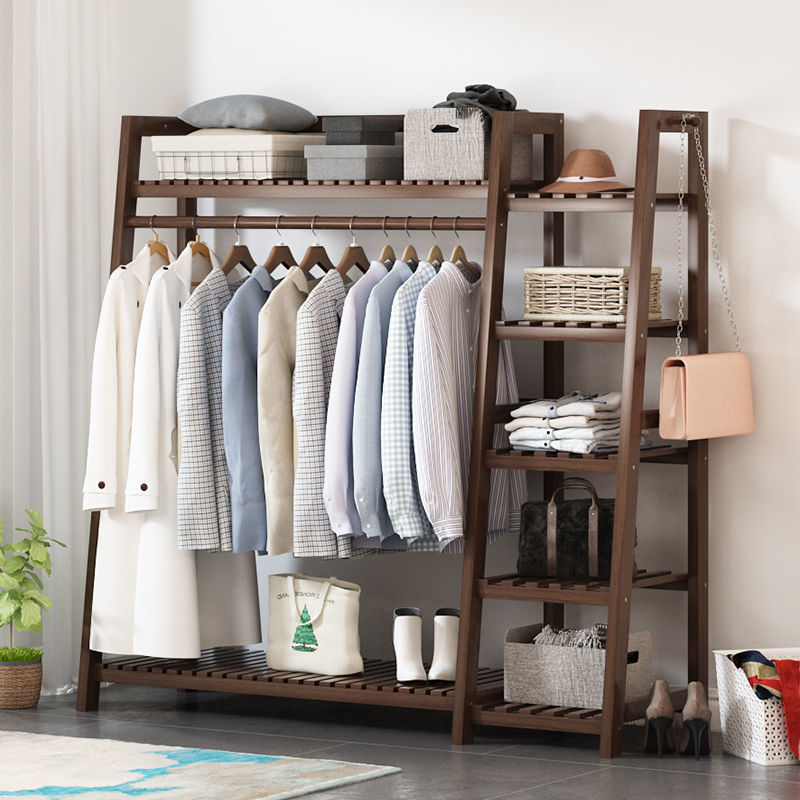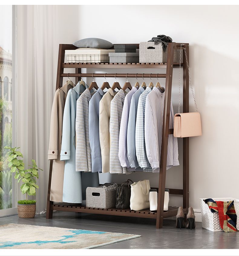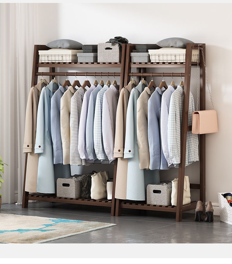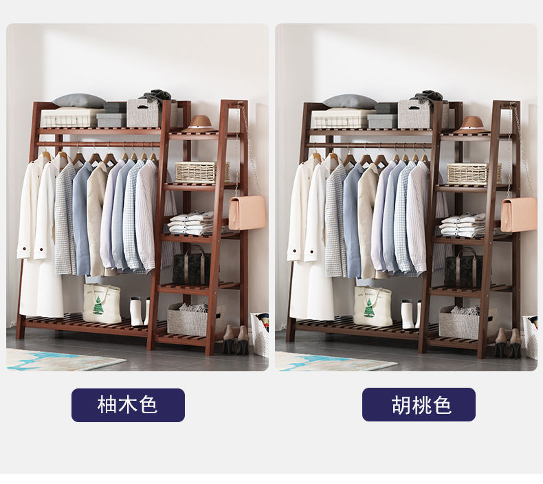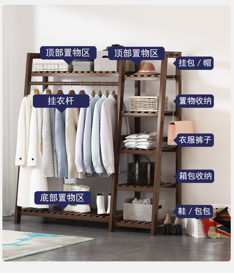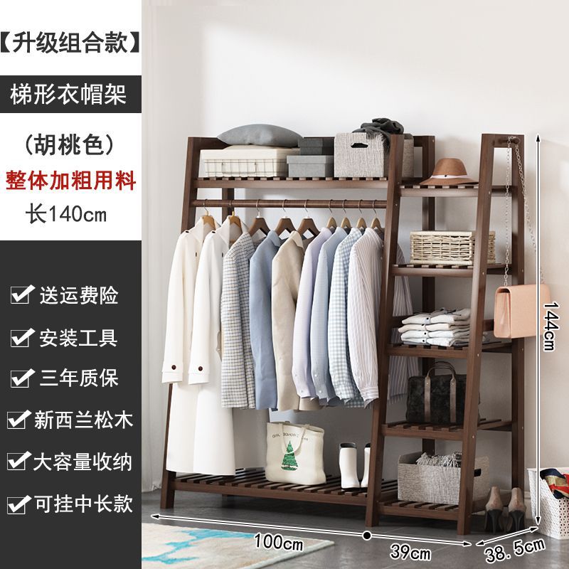 단단한 나무 바닥 걸이 옷걸이 두꺼운 침실 간단한 코트 랙 다기능 옷장 옷 보관 랙 나무스토어 가기