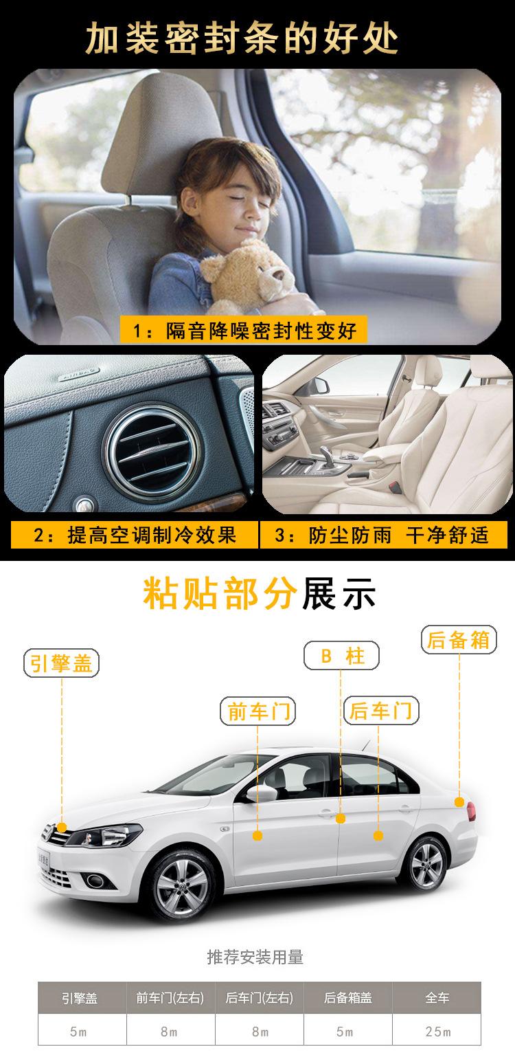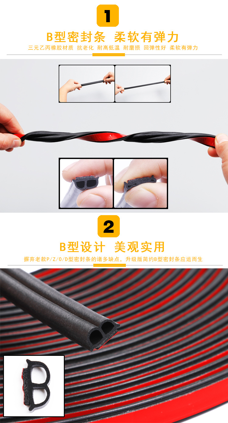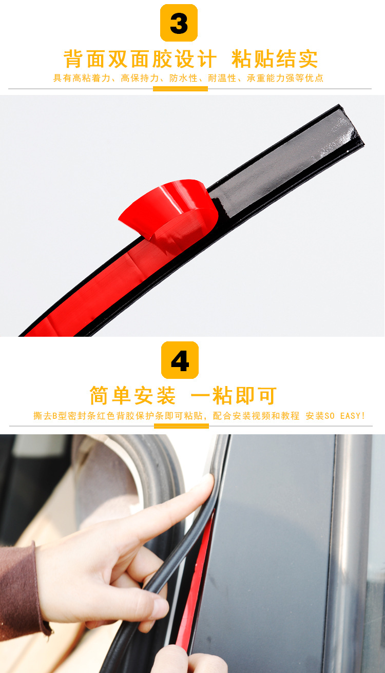 자동차 도어 범용 유형 B 두꺼운 폼 씰링 스트립 방음 및 소음 감소 충돌 방지 가장자리 씰링 자체 접착 방음 스트립스토어 가기